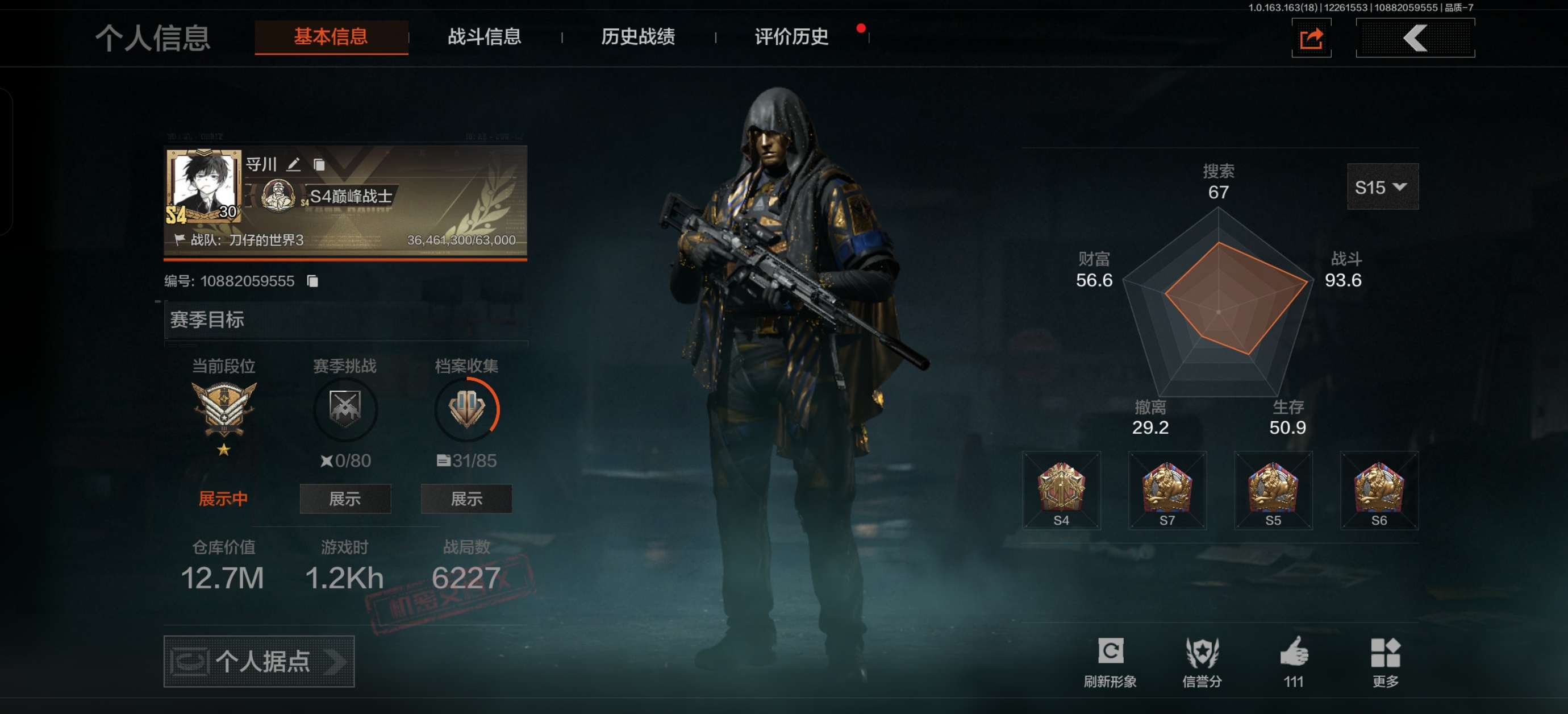 暗区突围账号,13.4m,科恩币11590k