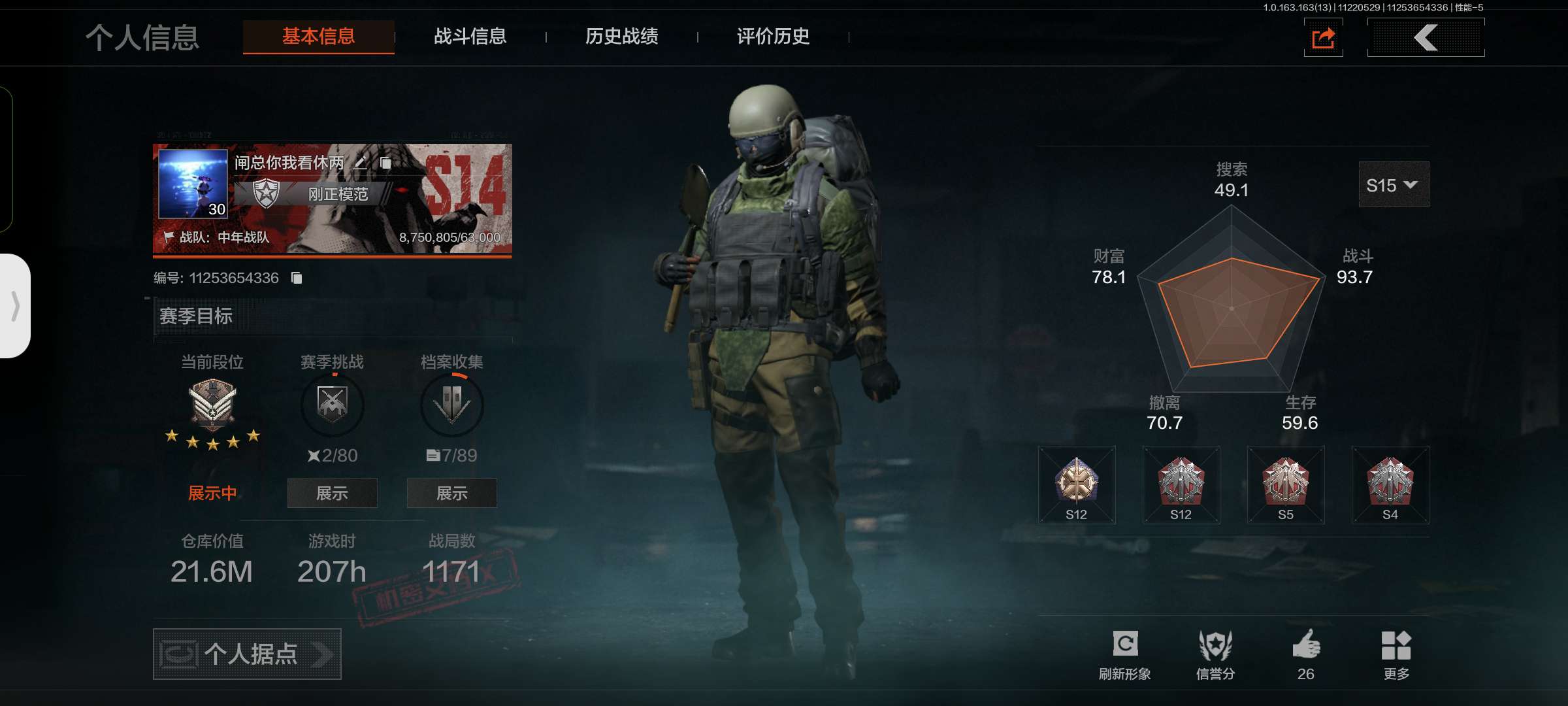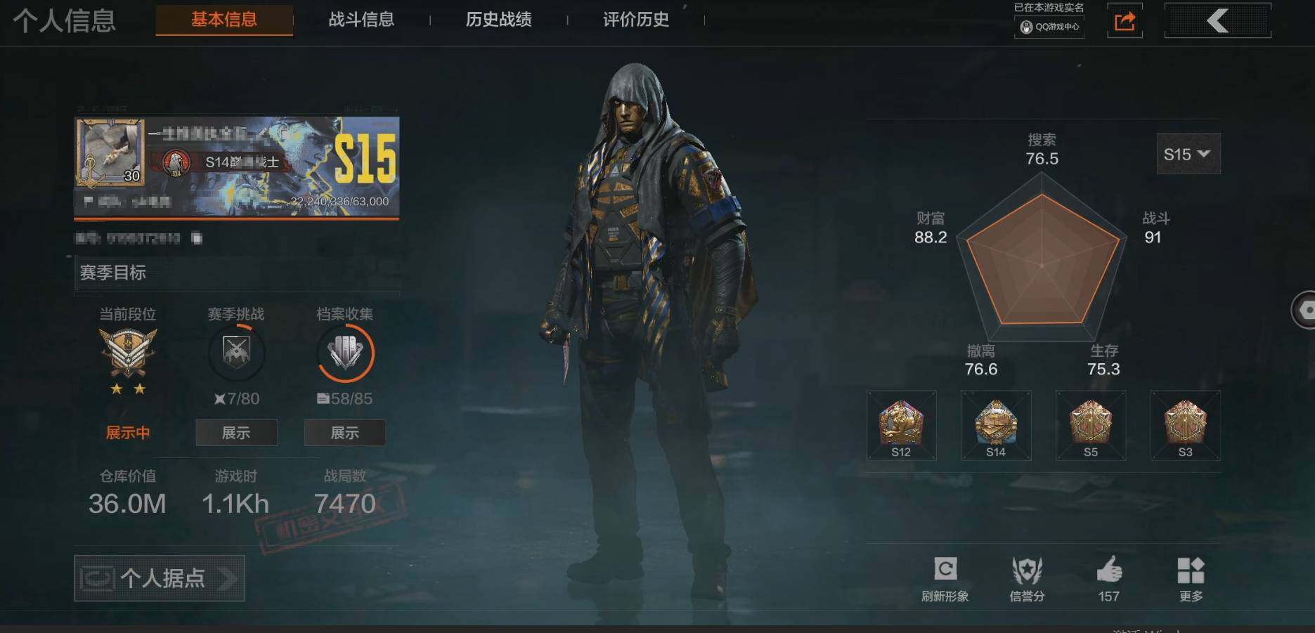 等级:30/段位:新锐/仓库价值(百万):36/