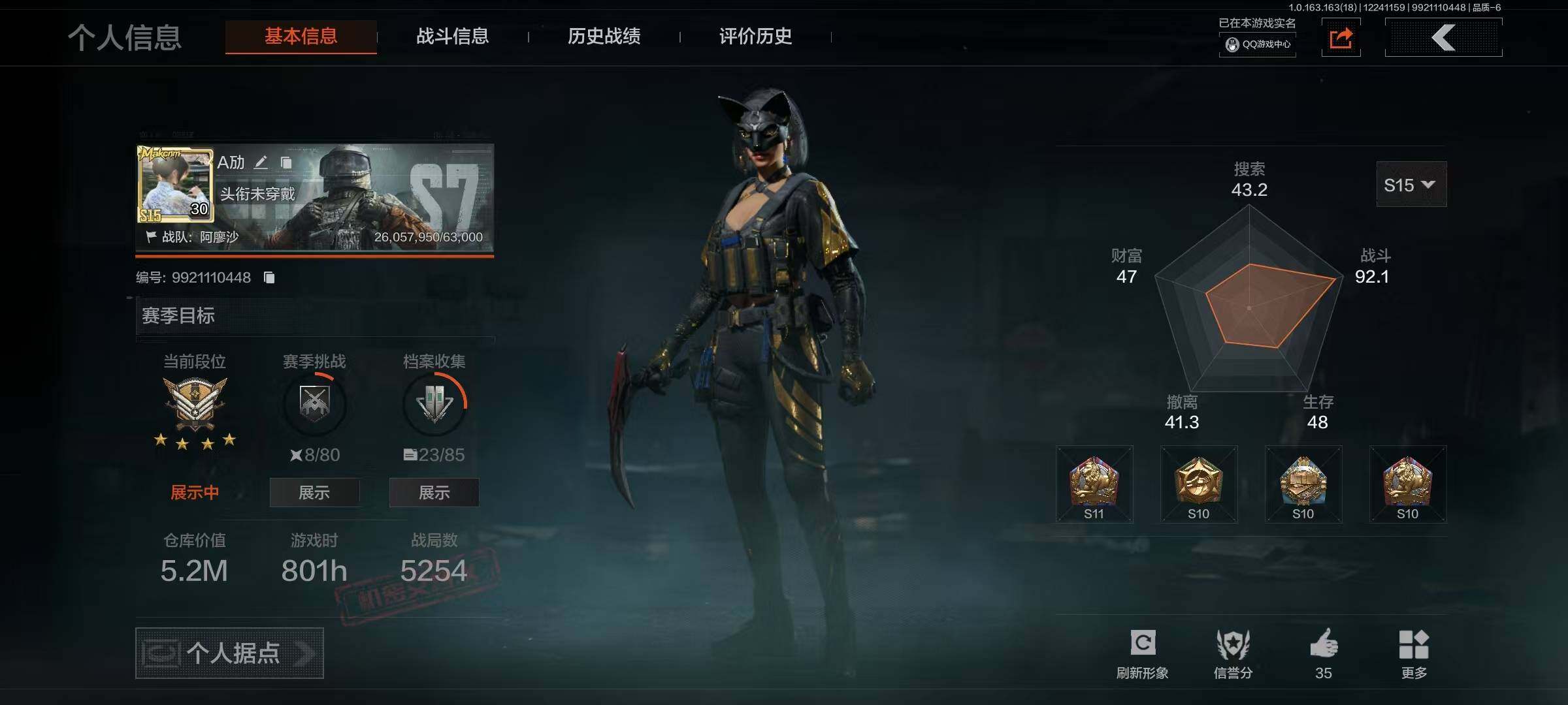 一年帐号有一本机密 和一个金色的VSS枪皮 四个T 30级