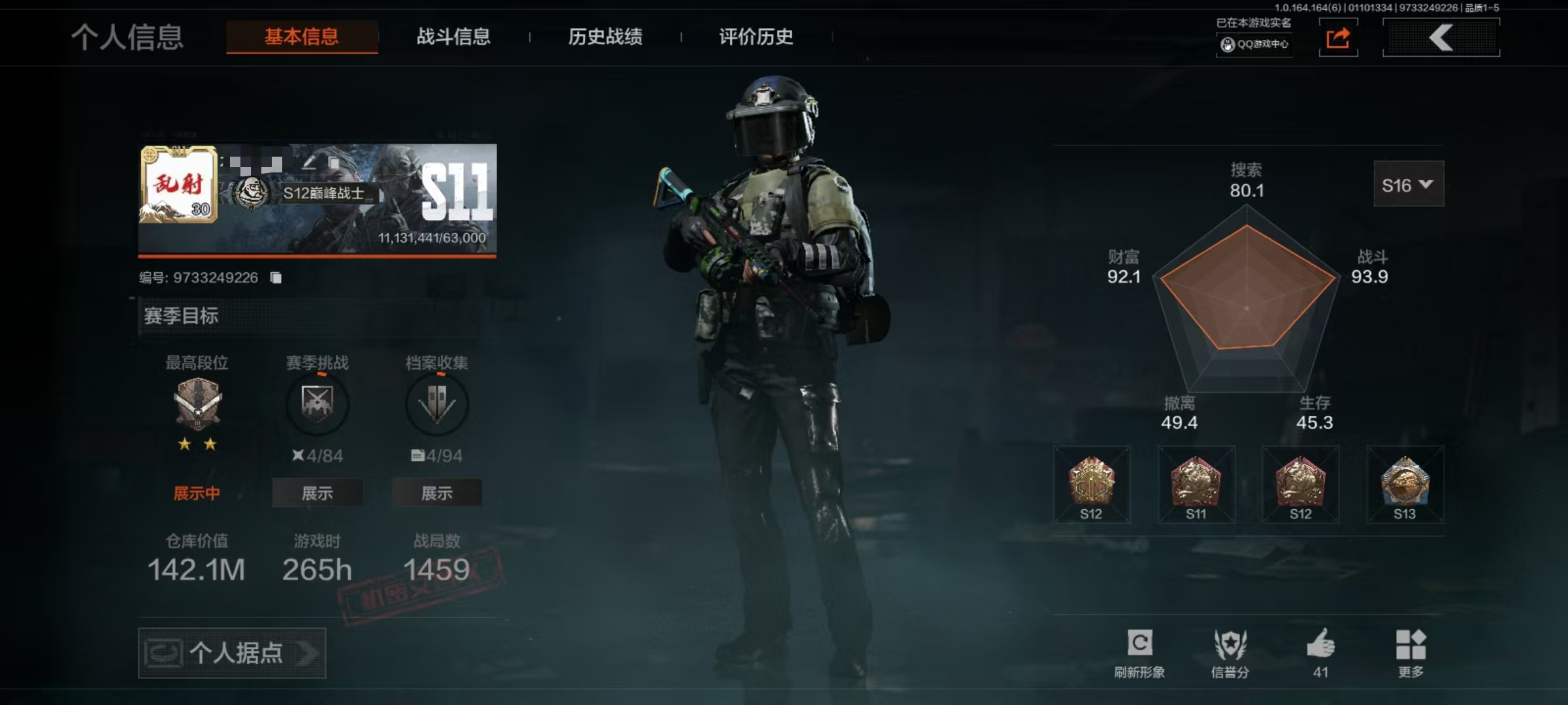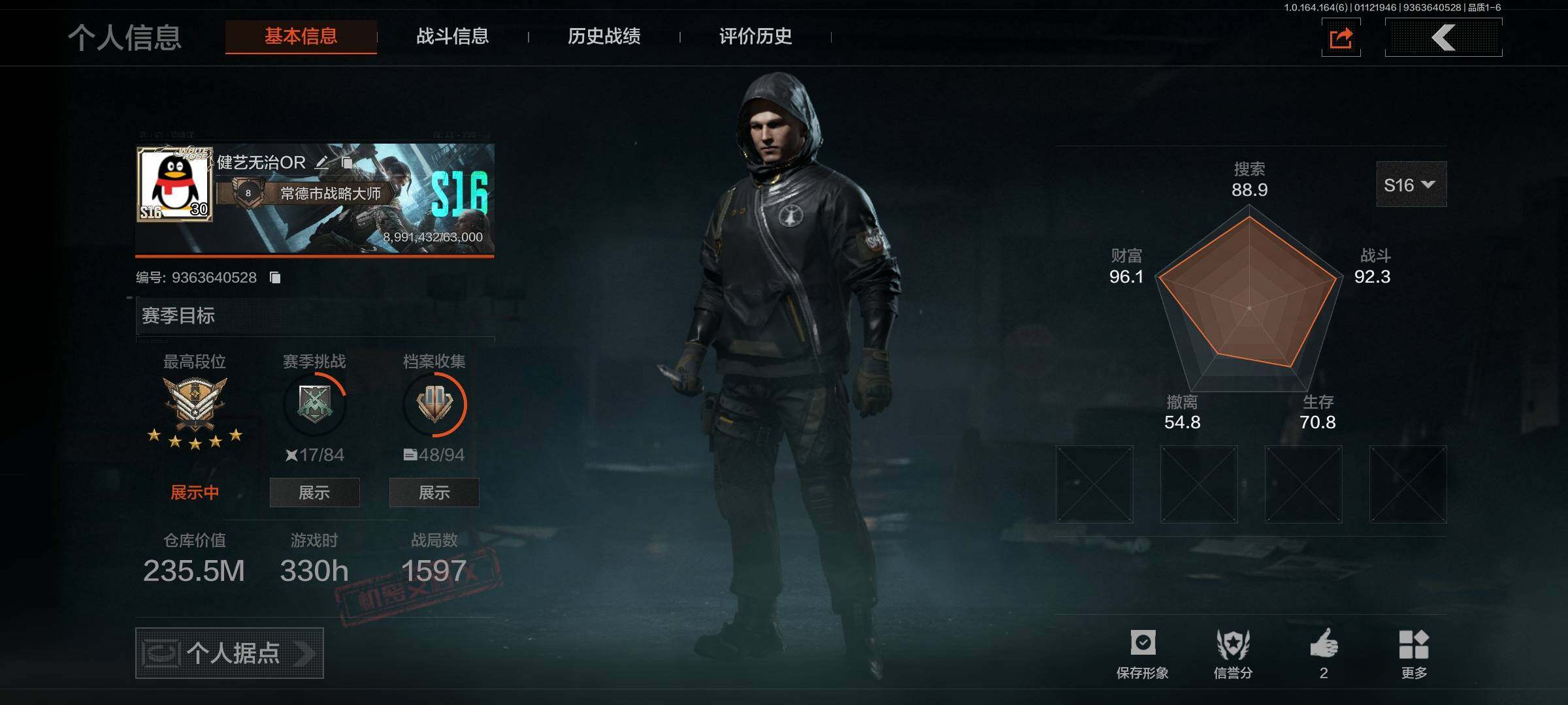 段位:暗区传说/仓库价值(百万):235.5