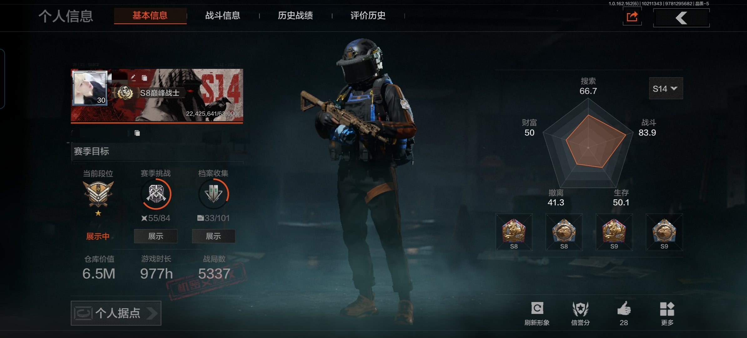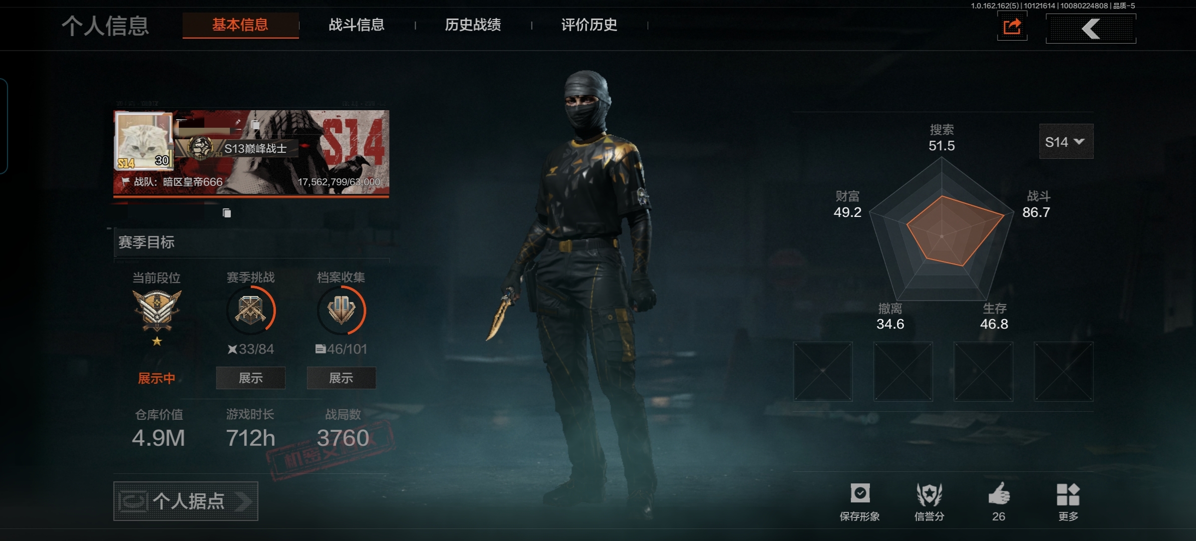 【仓库价值65.7M 现金库50M 贝利亚黄昏 野战折刀 2金枪 1金手套禁忌力