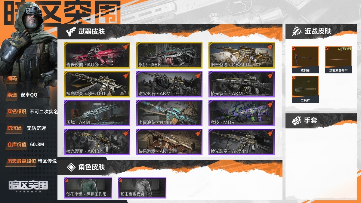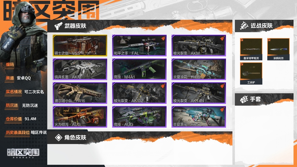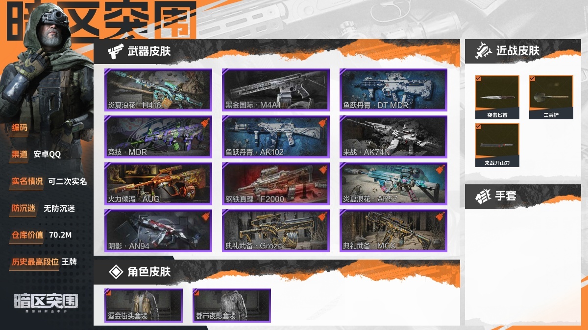 30级,刀皮2,紫枪皮13,历史最高段位:暗区传说