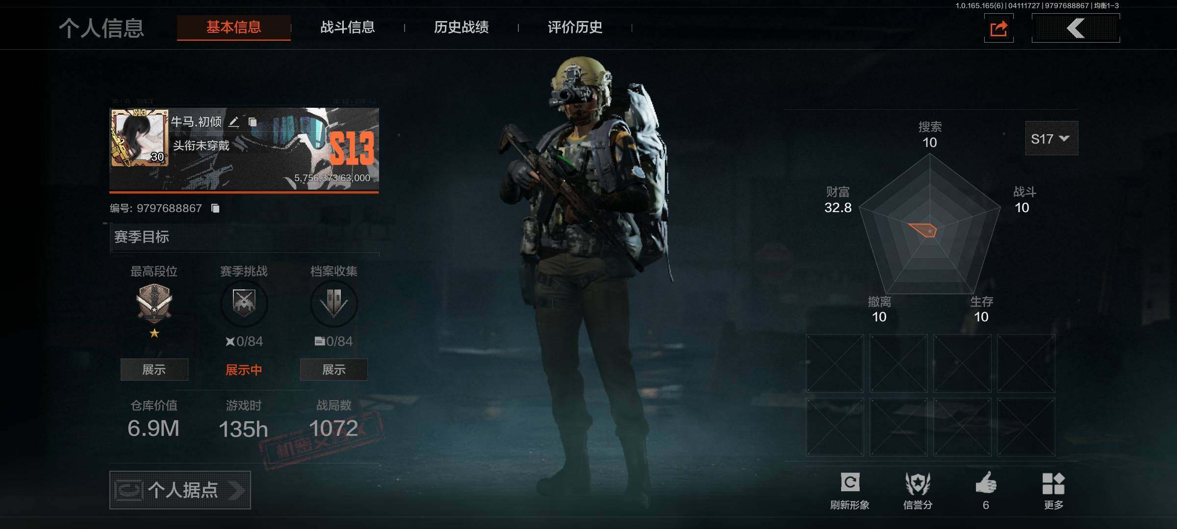 【AQZG1914】等级:30/段位:暗区传说/仓库价值(百万):785.2/