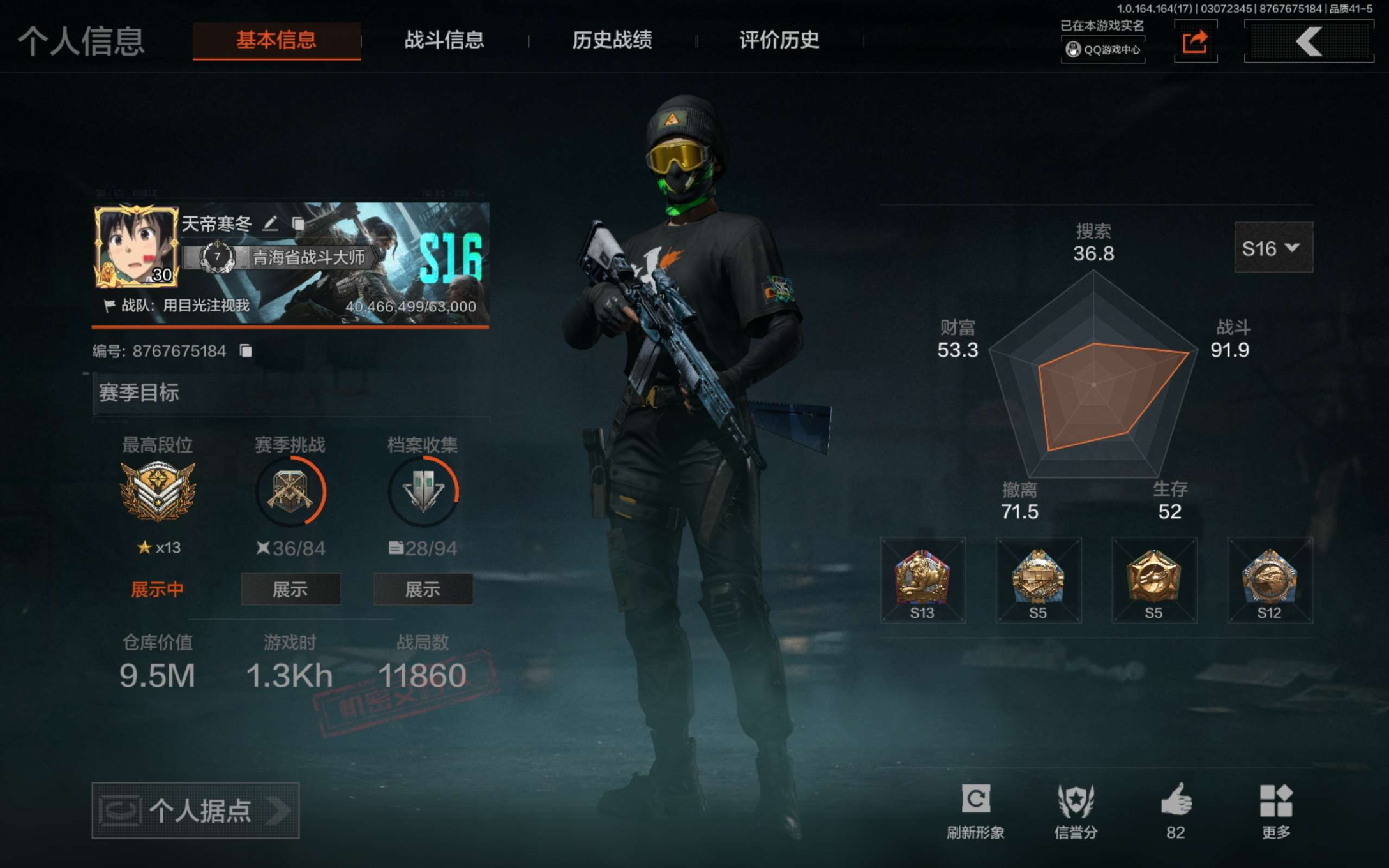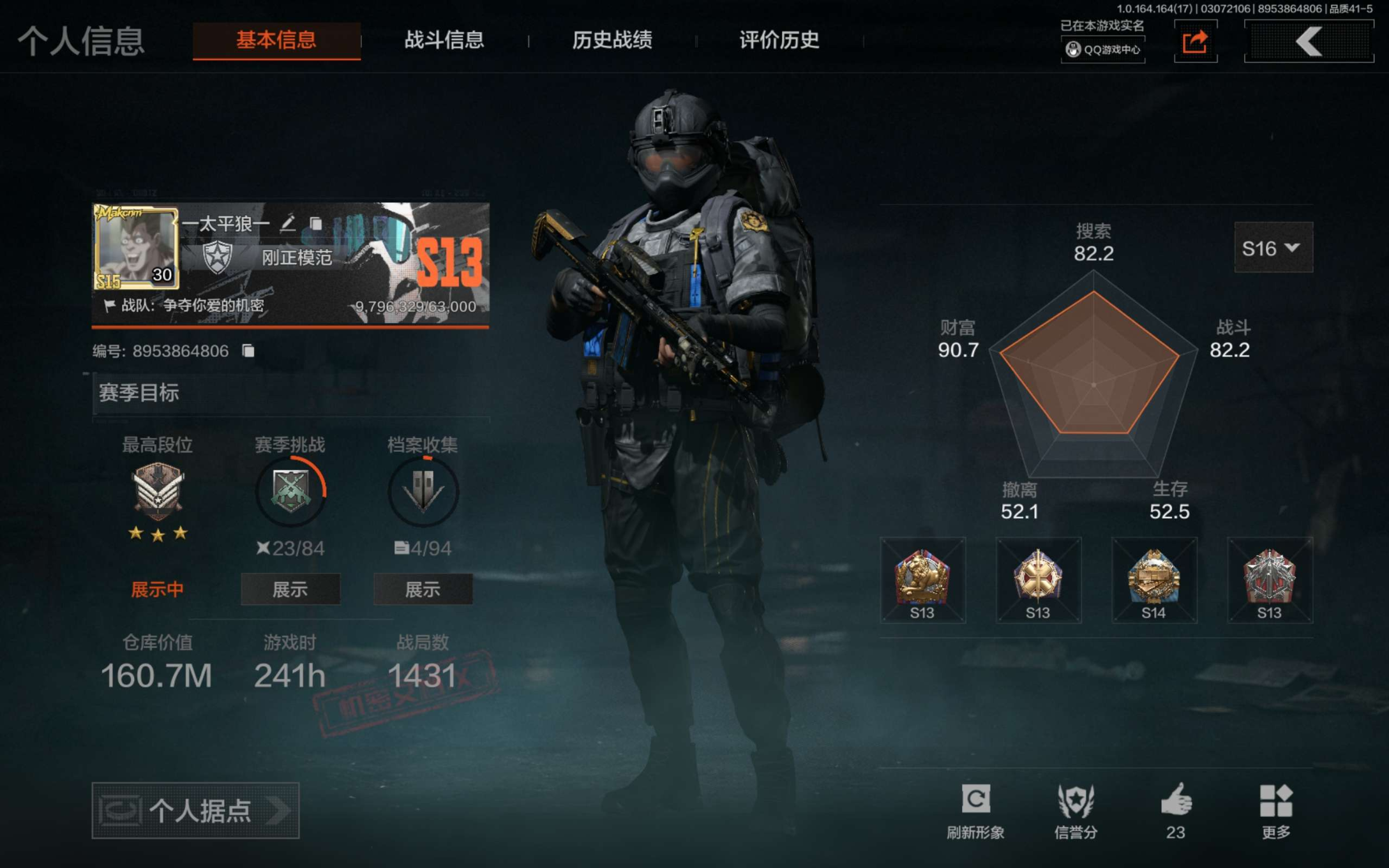 段位:王牌/仓库价值(百万):145.9/勇士战斧