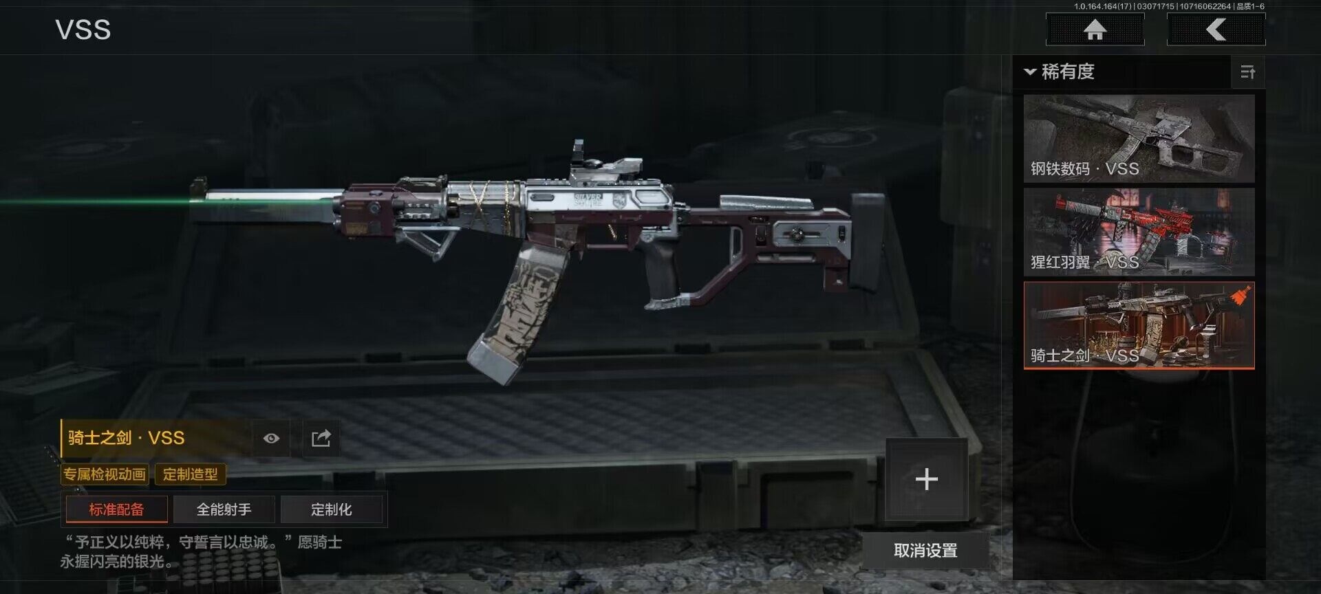 安卓Q-等级30-仓库价值12.2M-科恩币181390-【枪皮】骑士之剑VSS