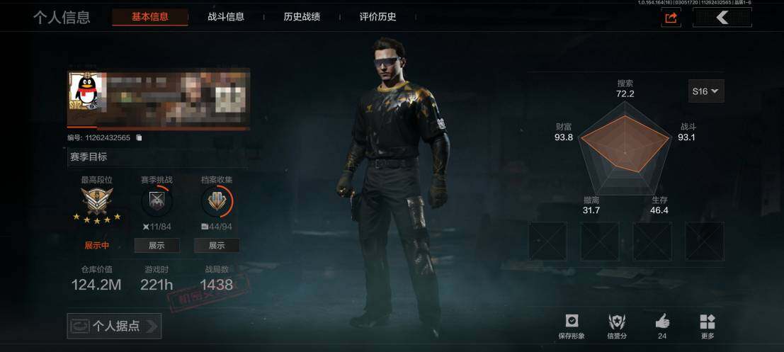 段位:暗区传说/仓库价值(百万):85.4/空腔战术/赤火炉心