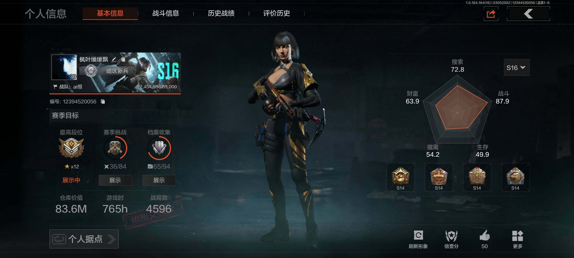 等级:30/段位:大师/仓库价值(百万):5.7/