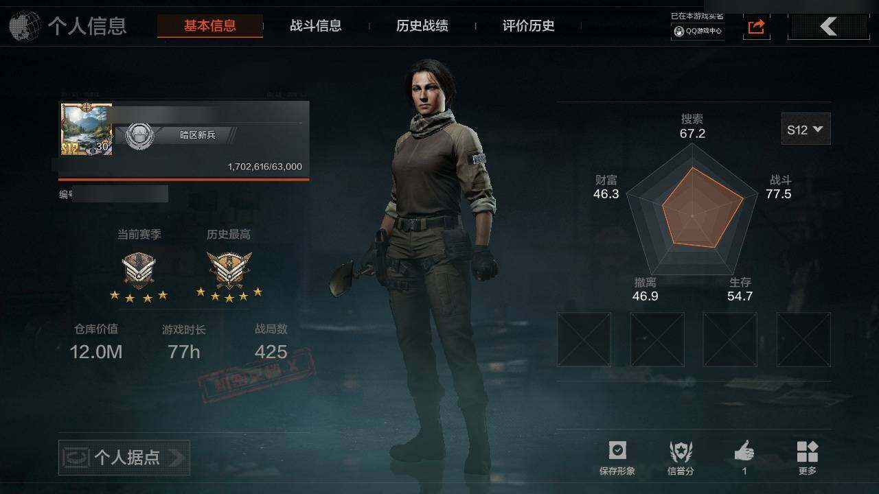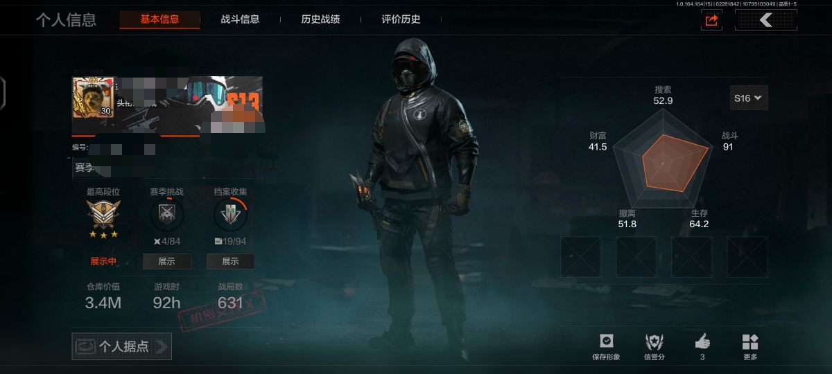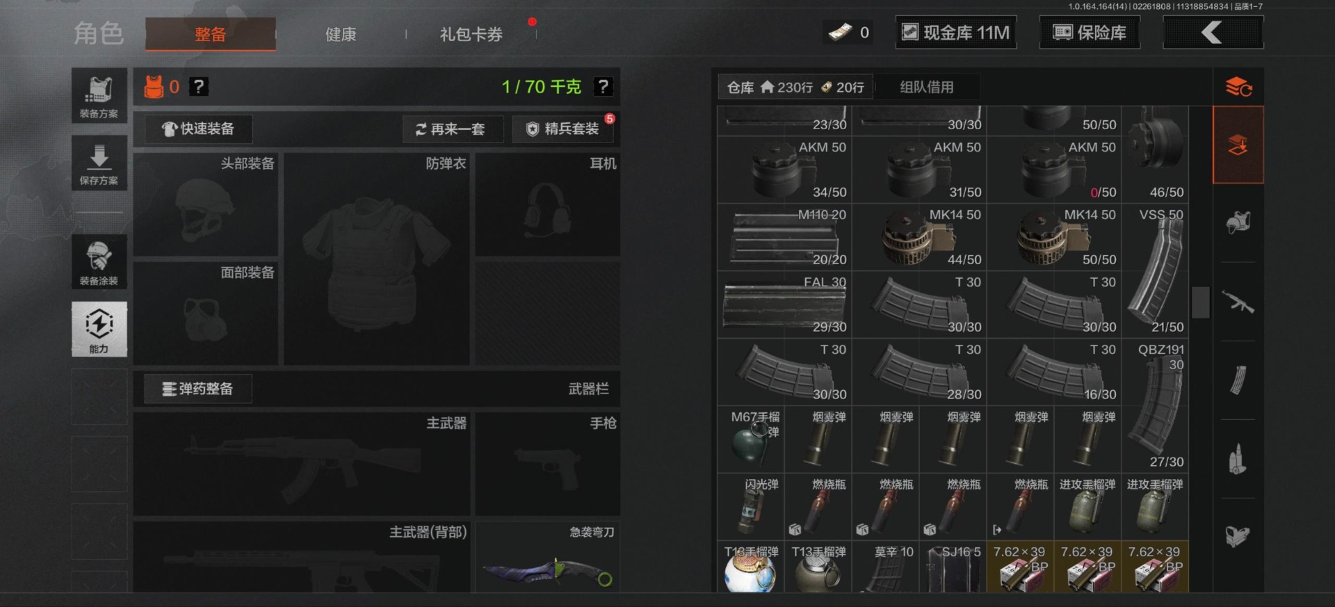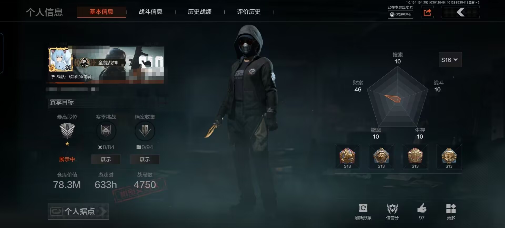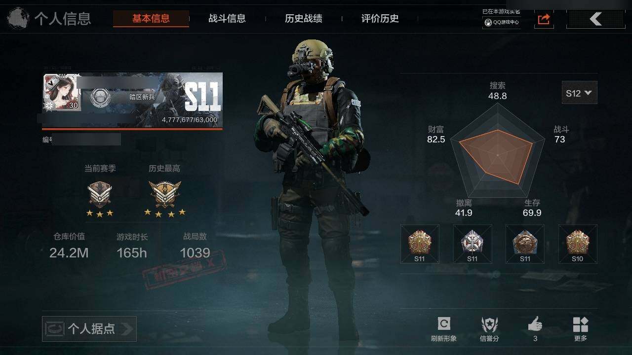 段位:专家/仓库价值(百万):6.5/急袭弯刀/工兵铲/蝮蛇