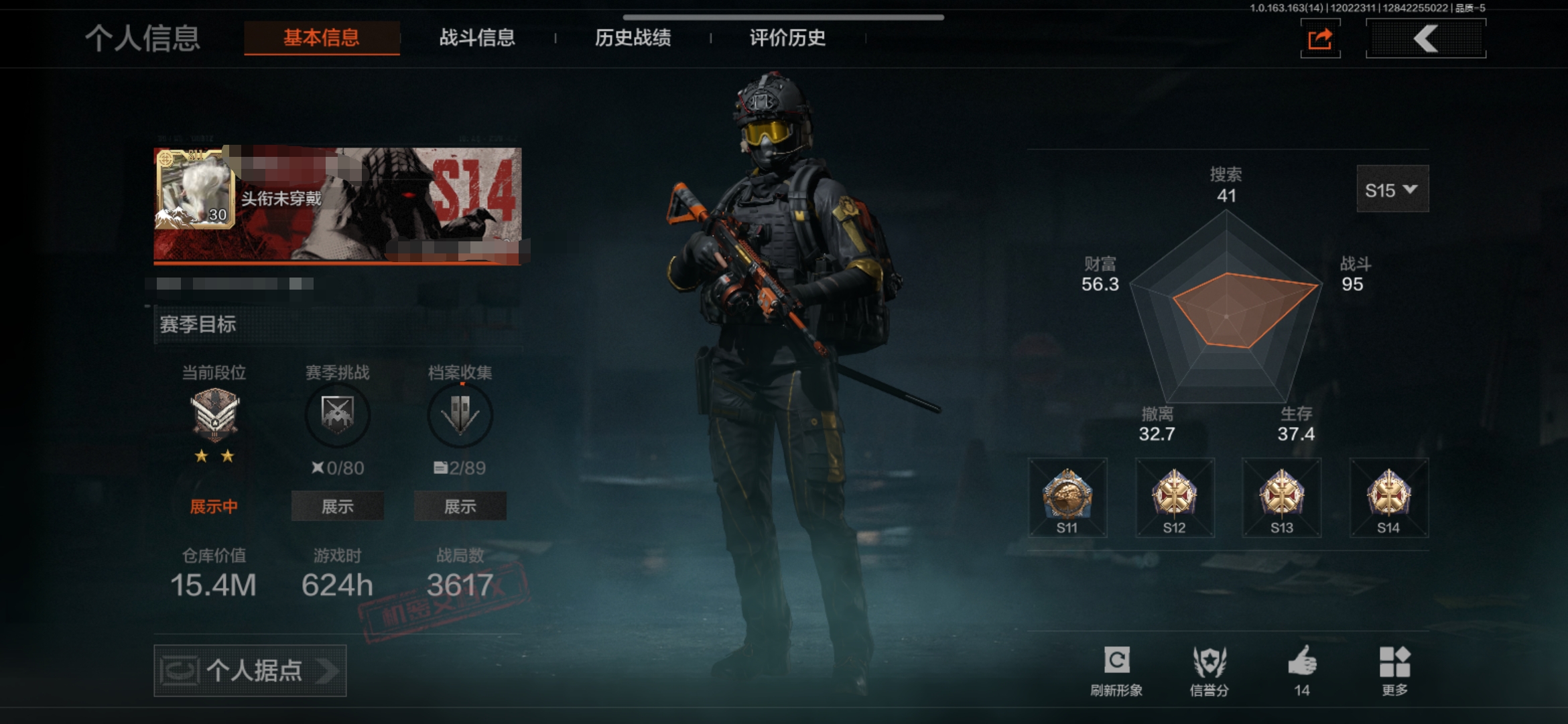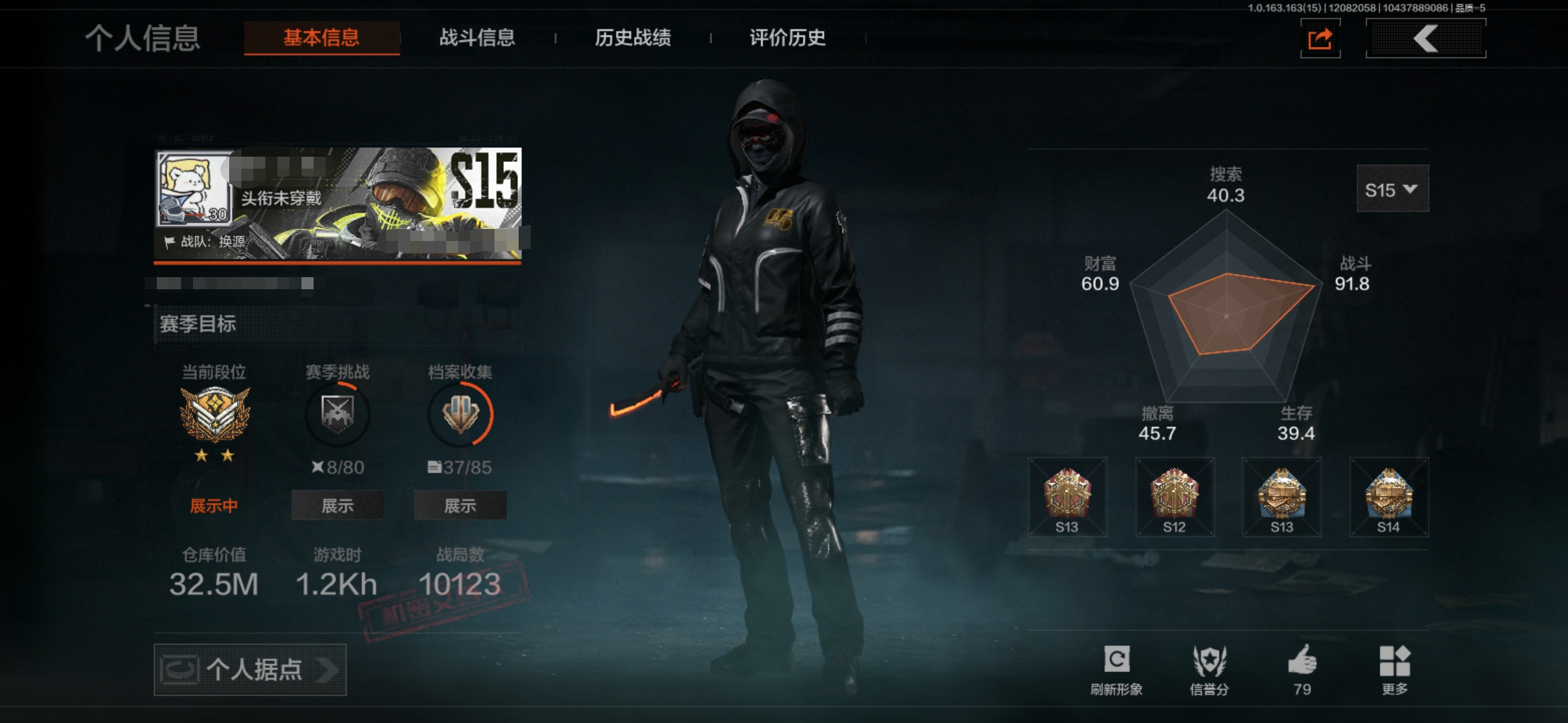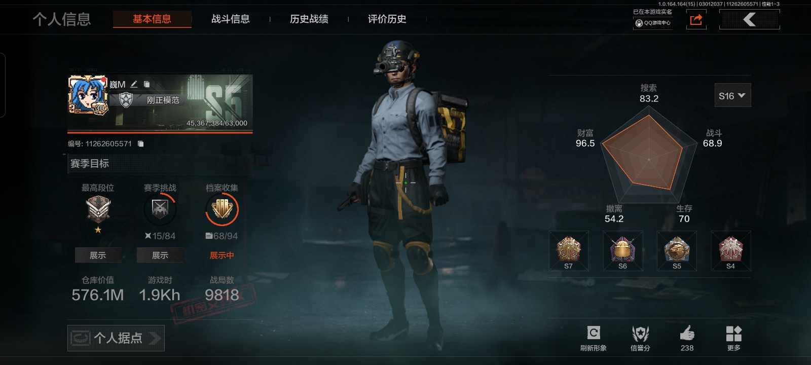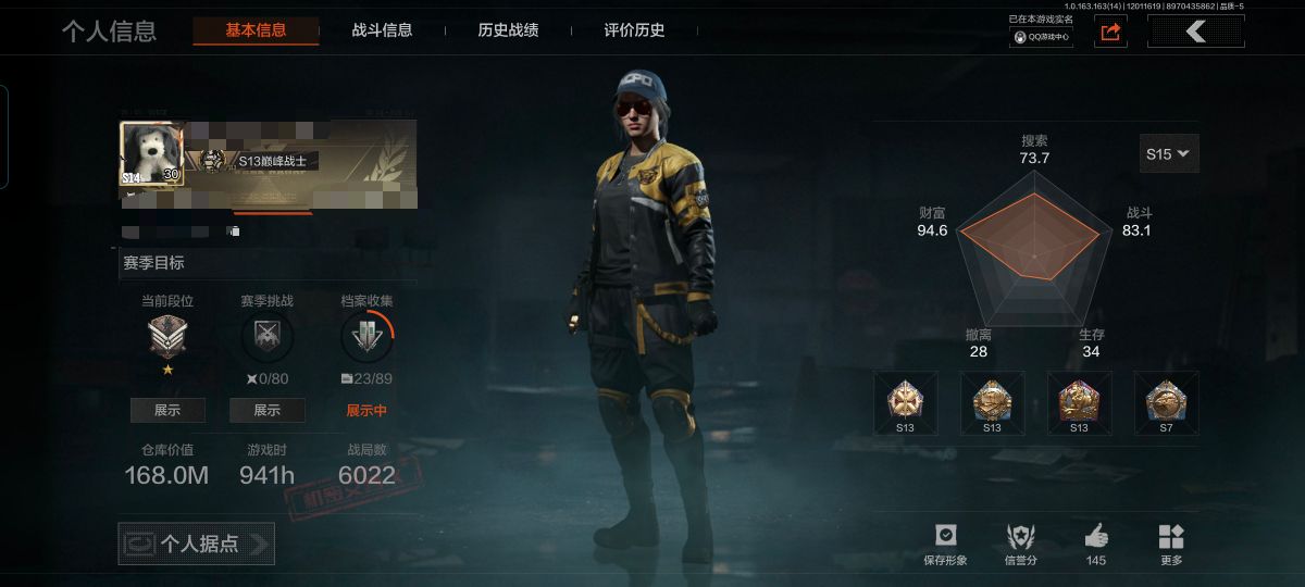 段位:专家/仓库价值(百万):6.5/急袭弯刀/工兵铲/蝮蛇