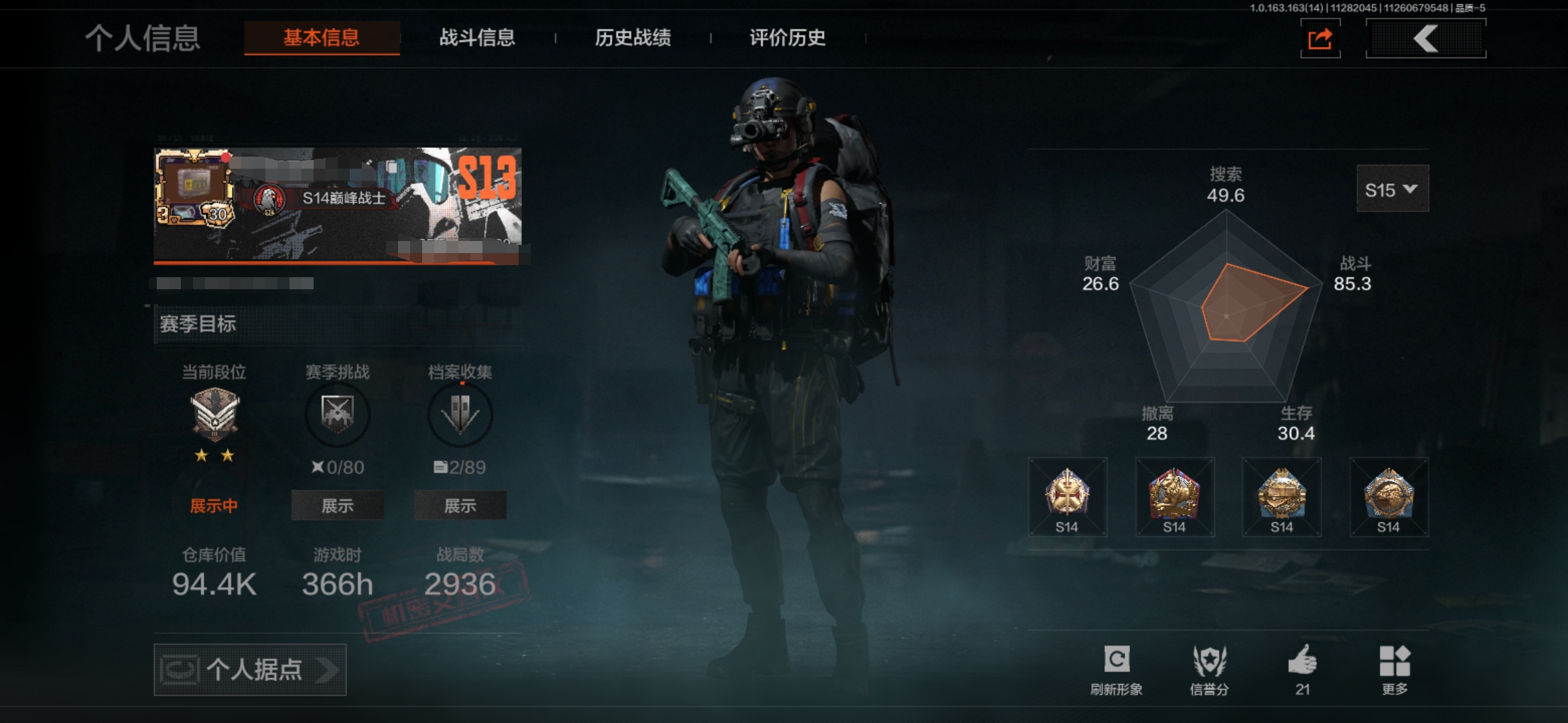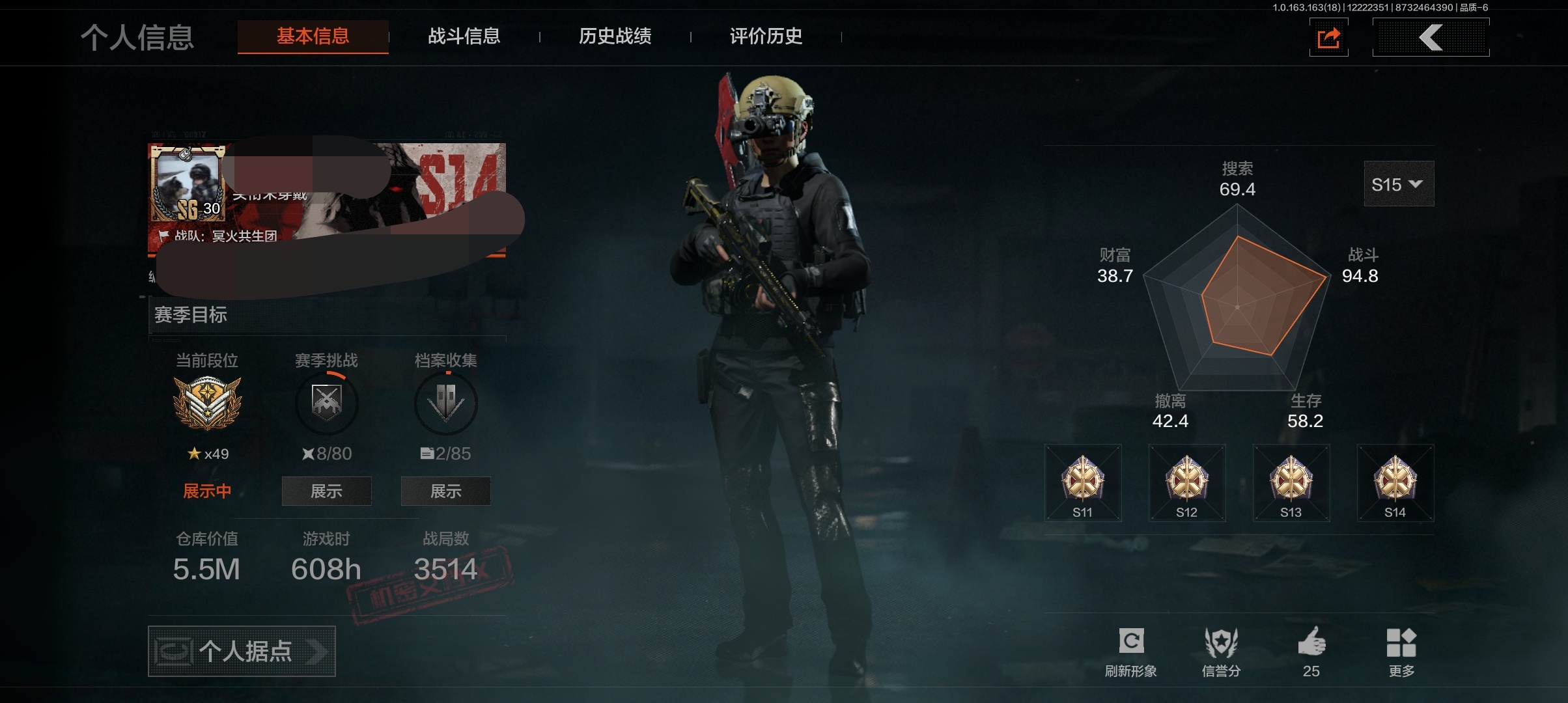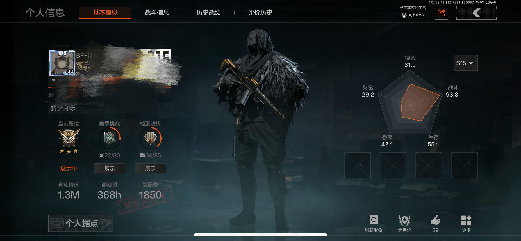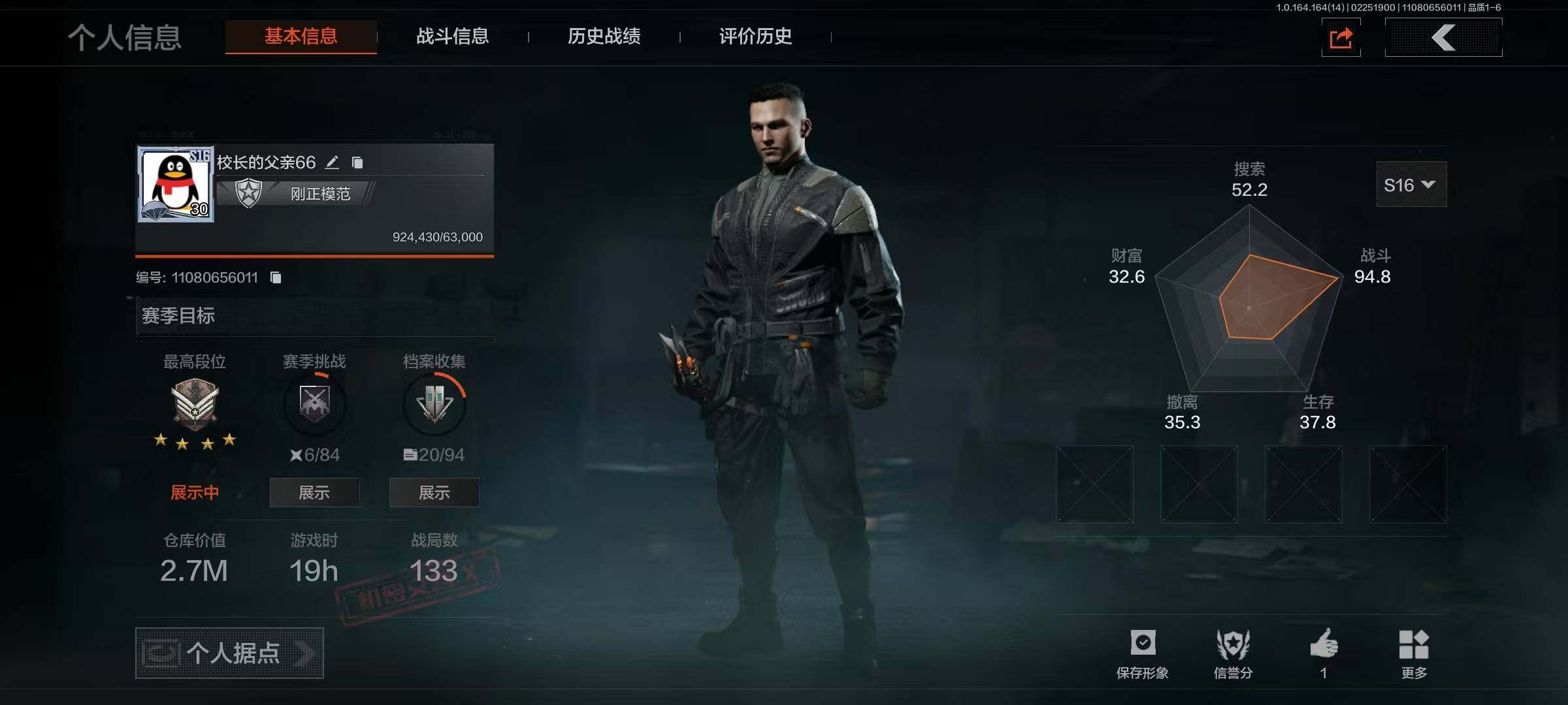 段位:专家/仓库价值(百万):6.5/急袭弯刀/工兵铲/蝮蛇