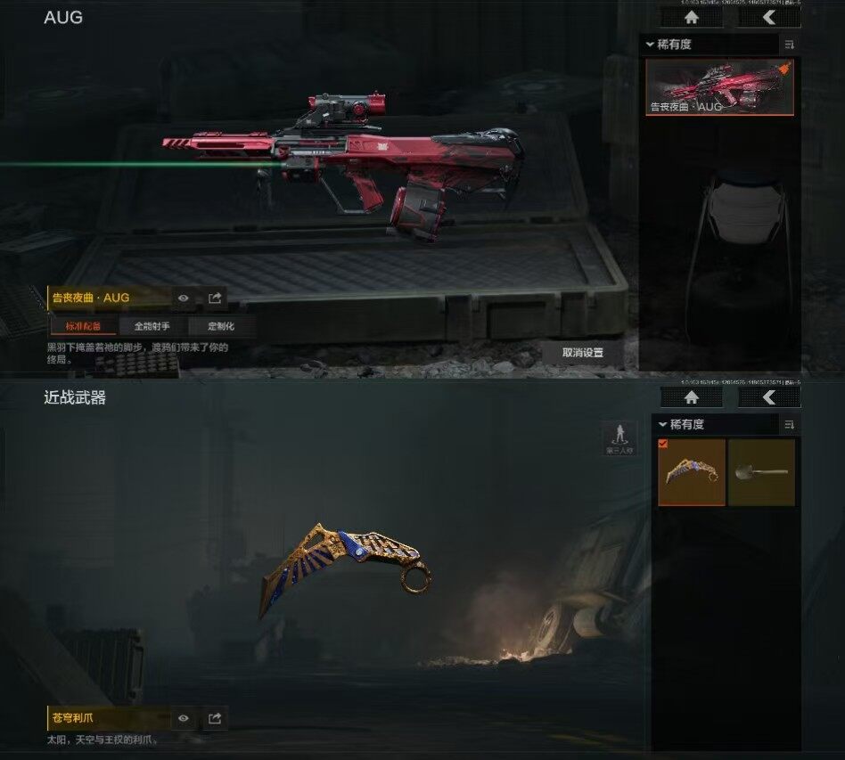 安卓QQ区,极品刀皮号,空腔战术,竞技·AUG,旗帜·AE