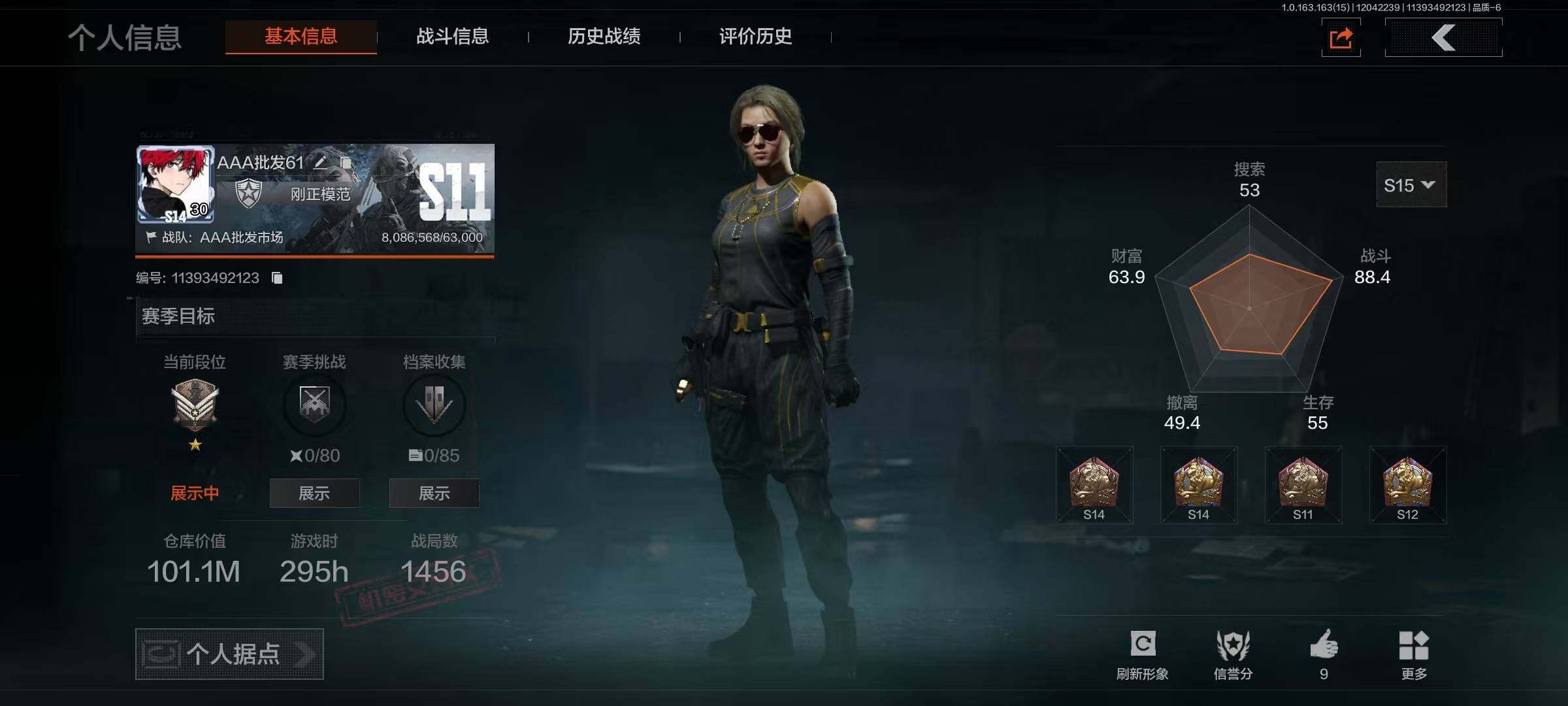 段位:新锐/仓库价值(百万):101/苍穹利爪/寒牙手刺