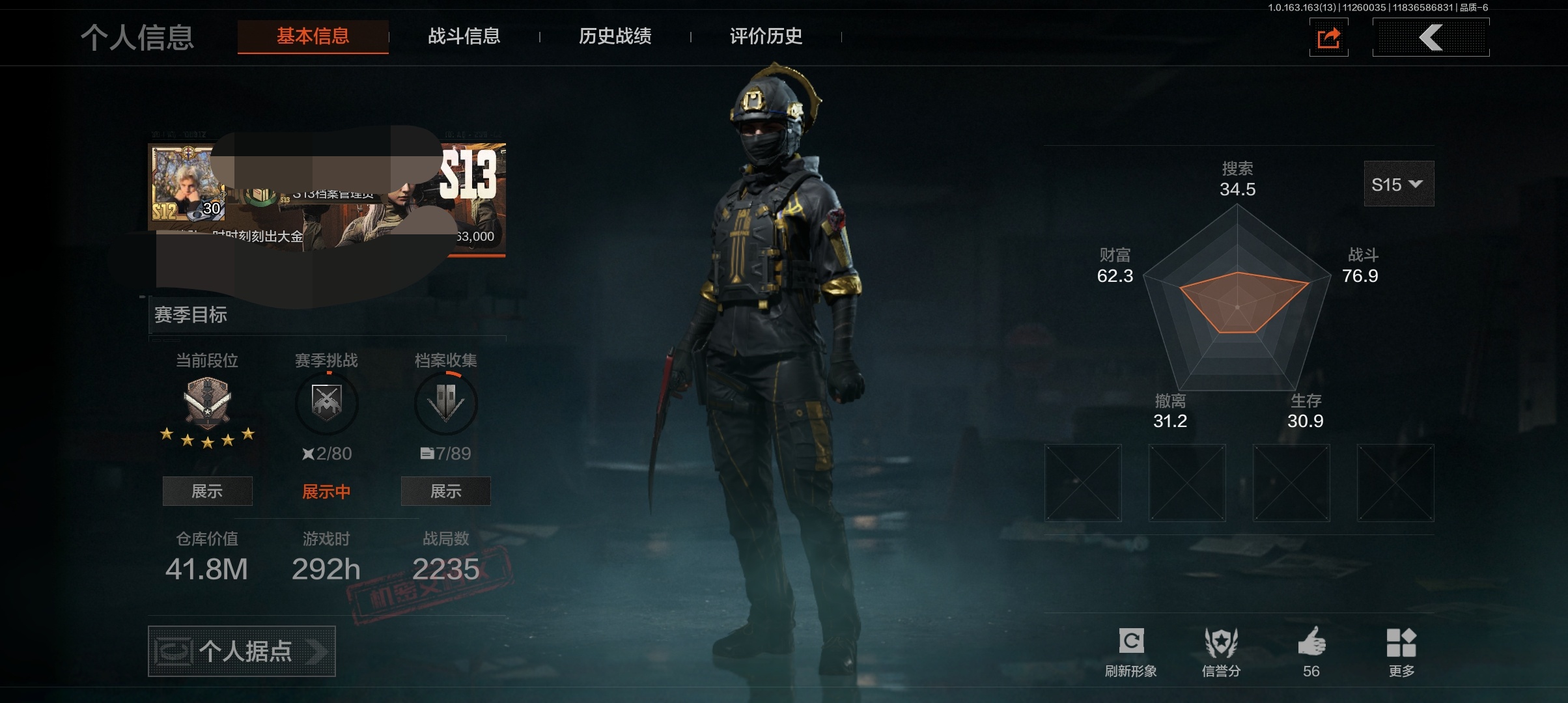 5金枪3刀皮 安卓Q-等级-段位30-仓库价值12.8M-科恩币1006K