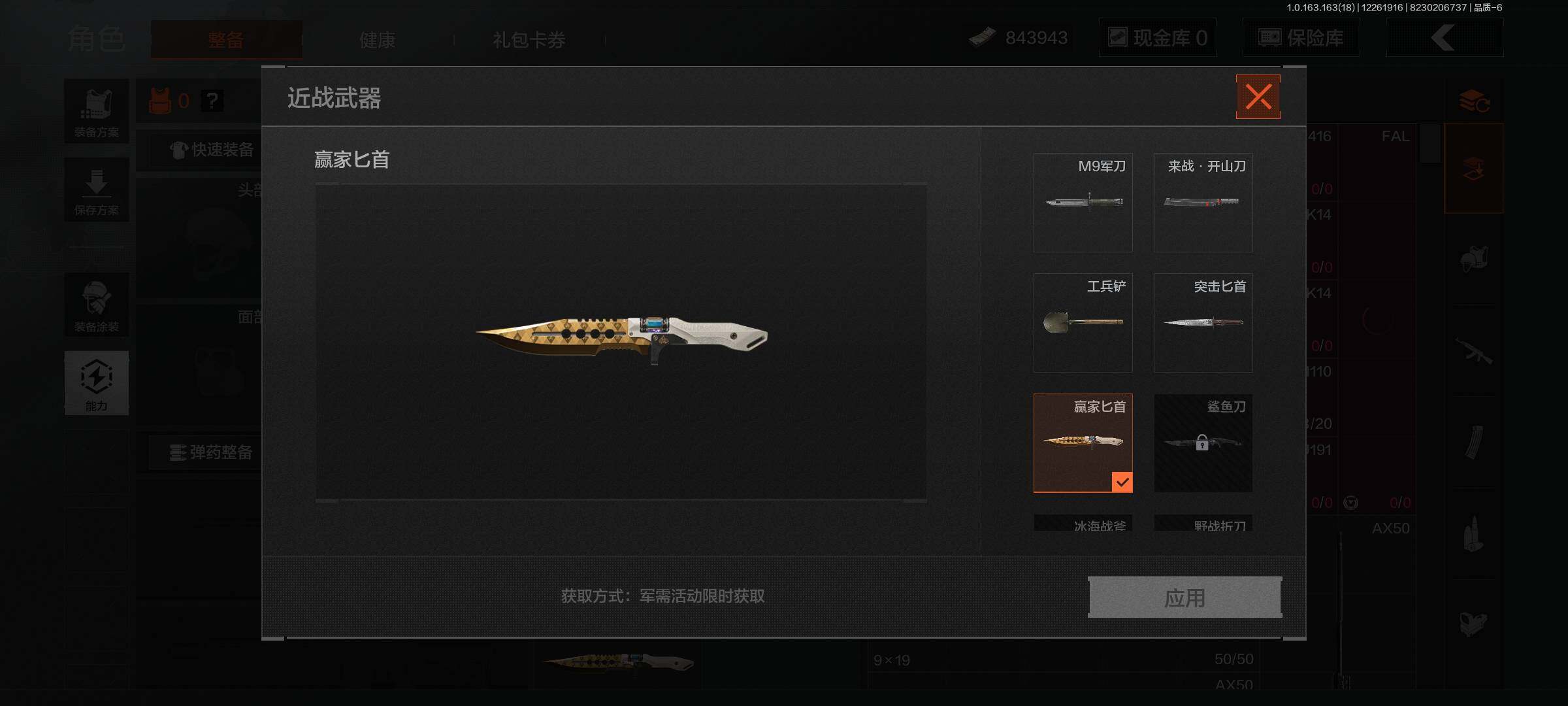 段位:王牌/仓库价值(百万):14/热能武器补牢/赢家匕首
