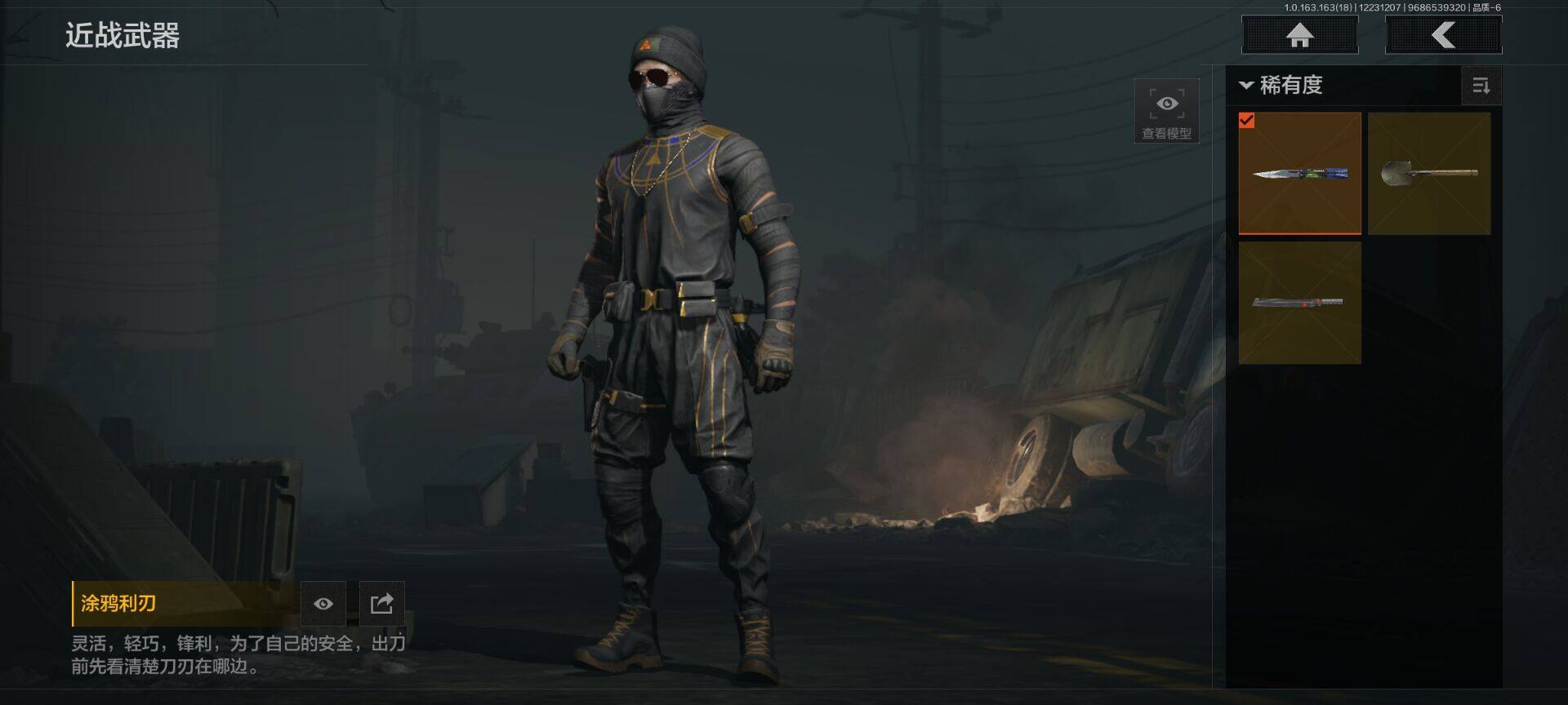 等级:30/段位:暗区传说/仓库价值(百万):9/柯恩币:292632/瑞兔折刀/苍穹利爪/S-07折刀/赢家匕首/热能武器补牢/瀚星斩铁/工兵铲/使徒欧瑞恩