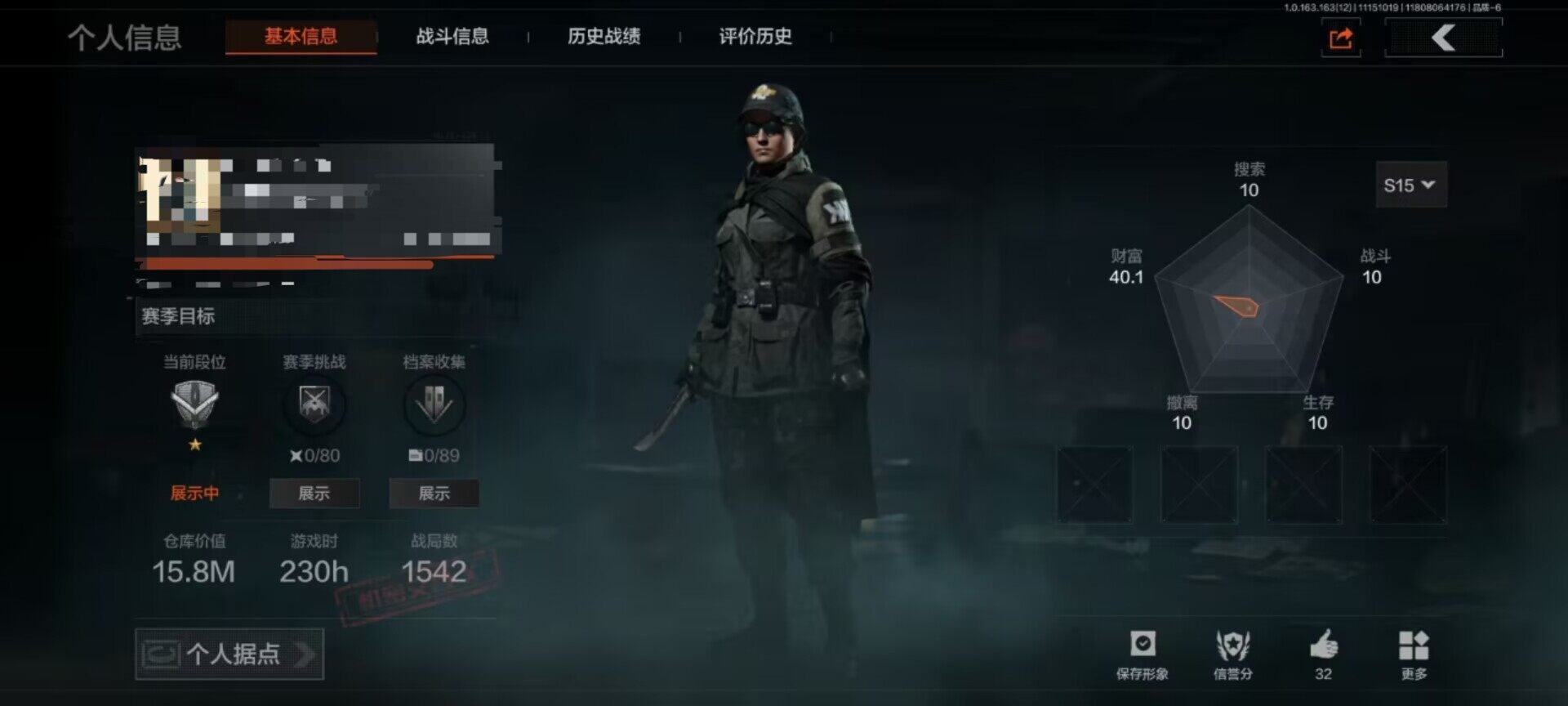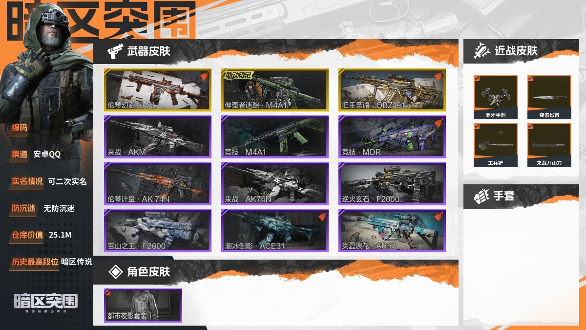 30级,刀皮3,紫枪皮7,历史最高段位:暗区传说