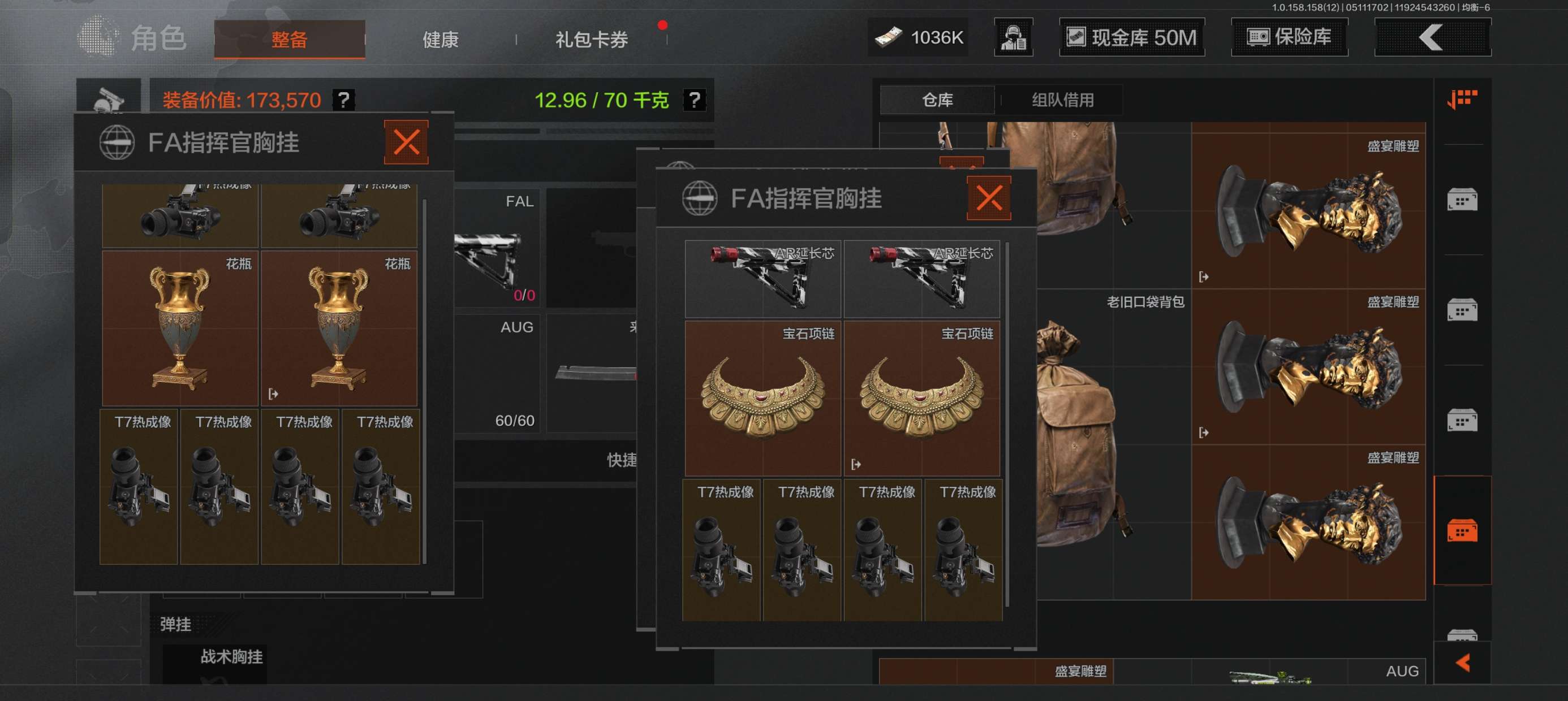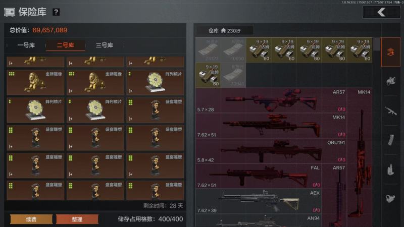 仓库价值260.9K 工兵铲,野战折刀,热能武器补牢,6金枪