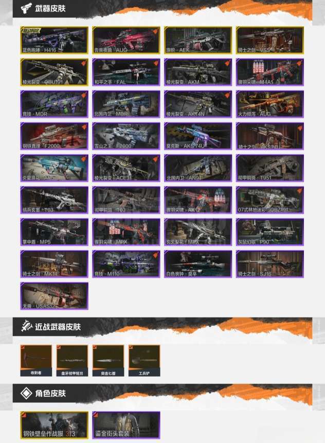 每个枪基本上都有皮肤,急速弯刀,和好几个金皮,s1老号,赛季衣服都有,纯币90m