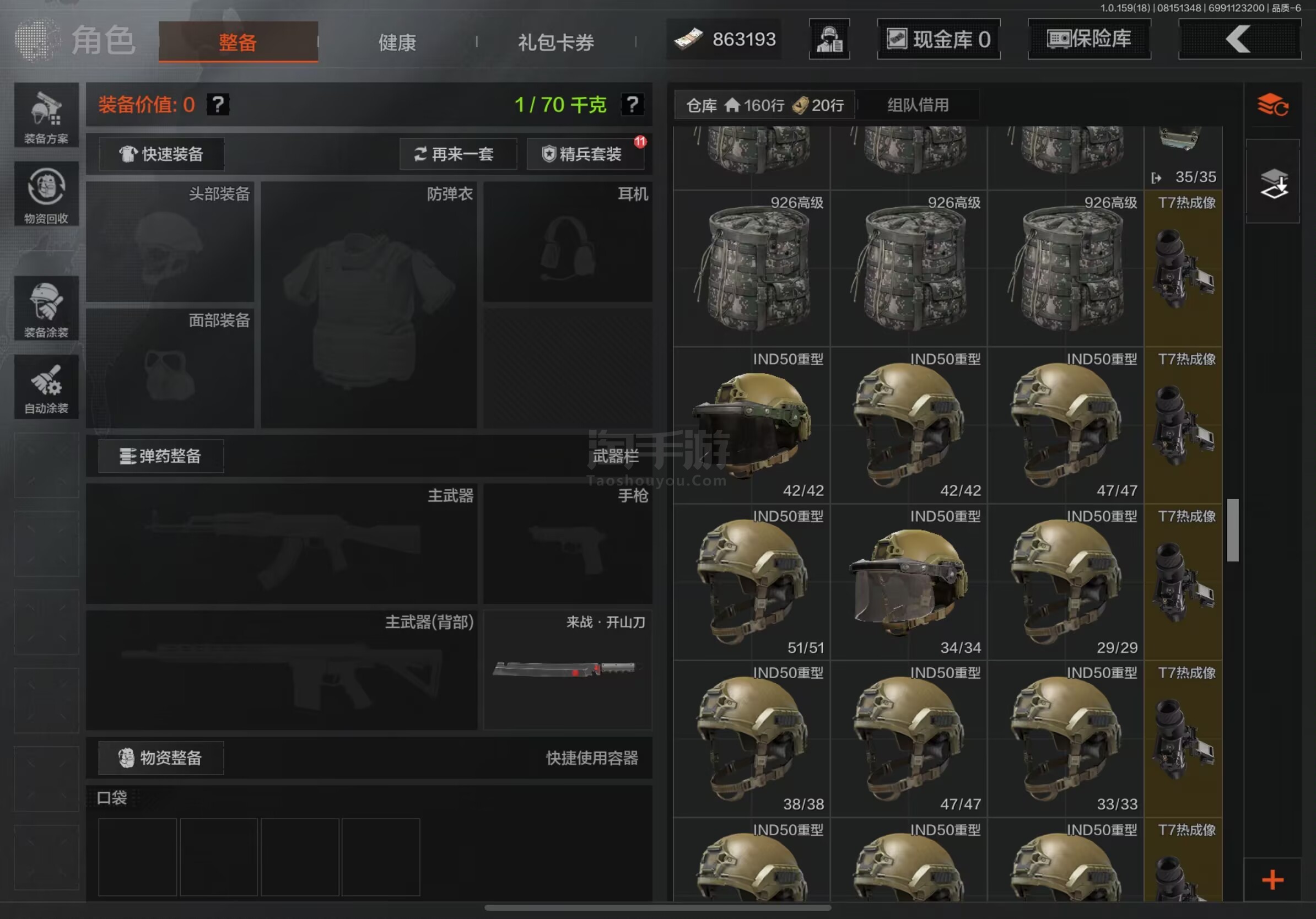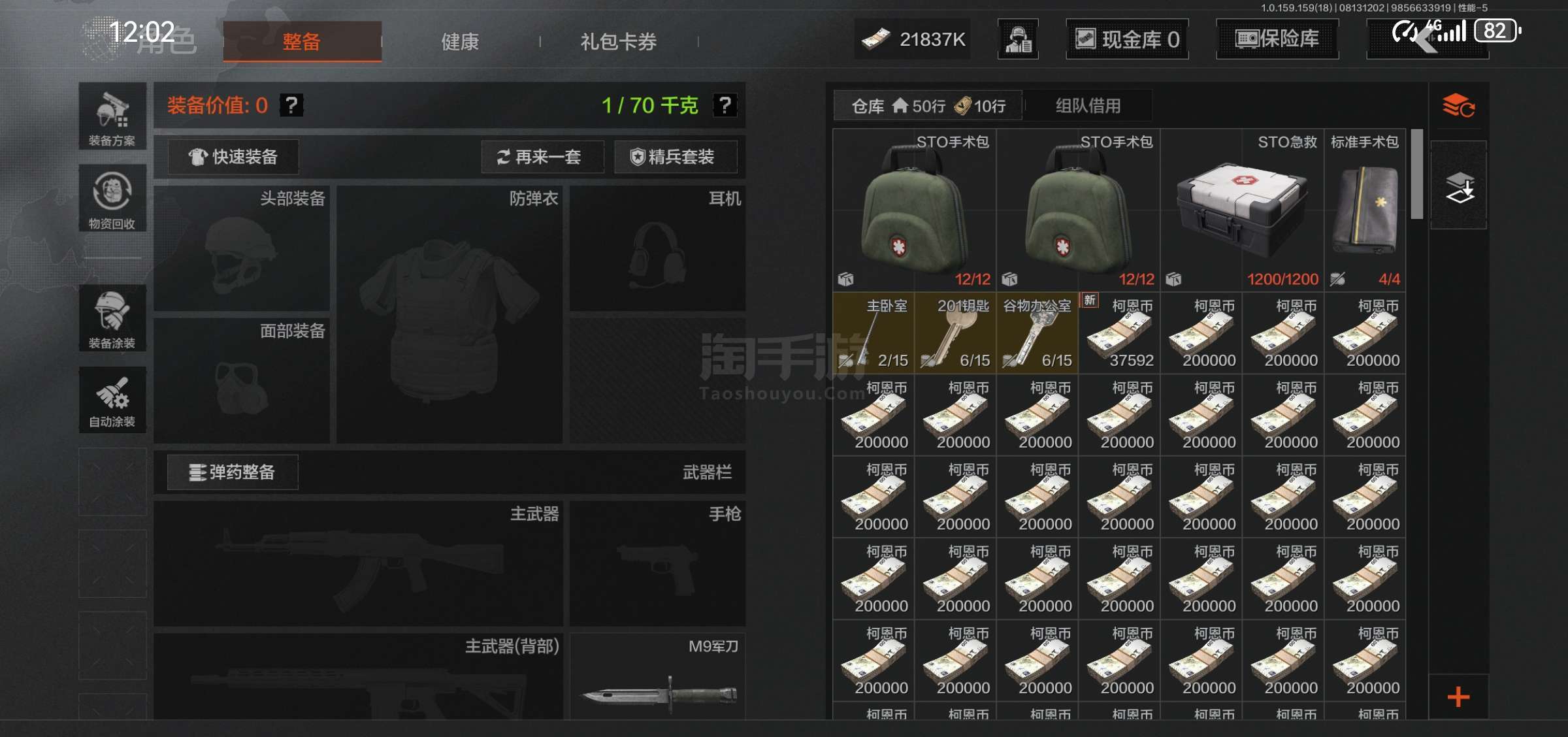 暗区突围,安卓vx,仓库价值不高,有三个金枪皮和三个近战武器