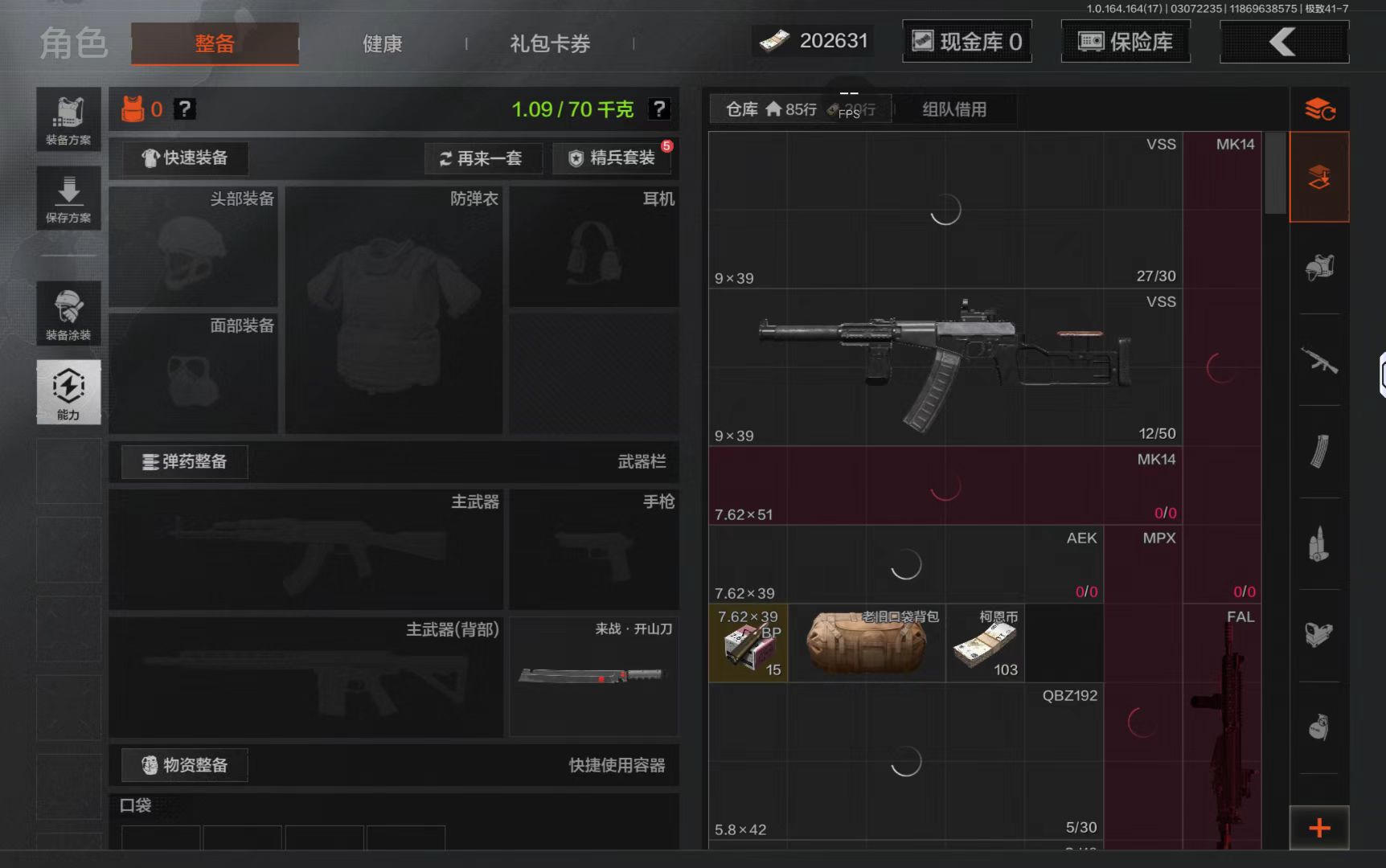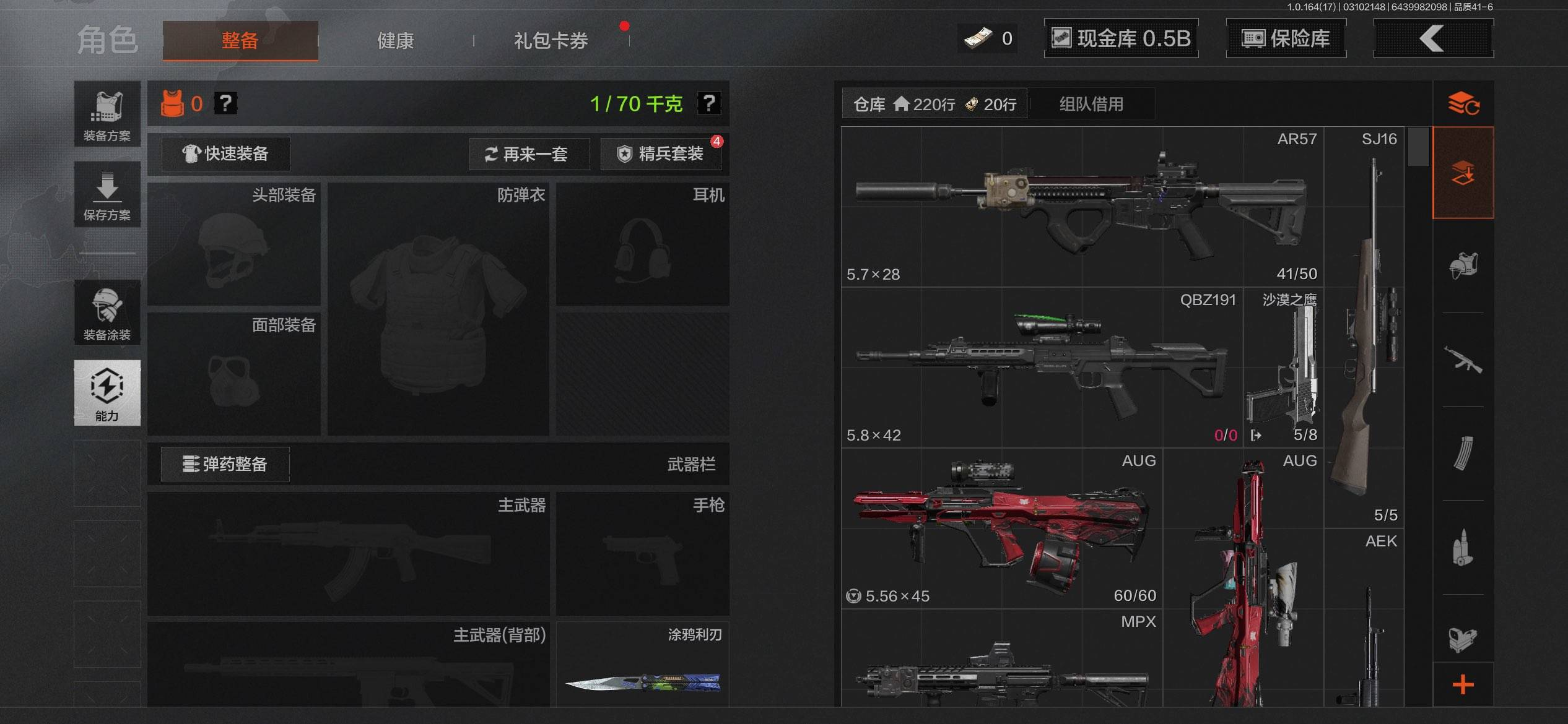 ab45,3把刀盘牙收割者,1金衣钢铁壁垒作战服,仓库10.3M,10黄枪,6