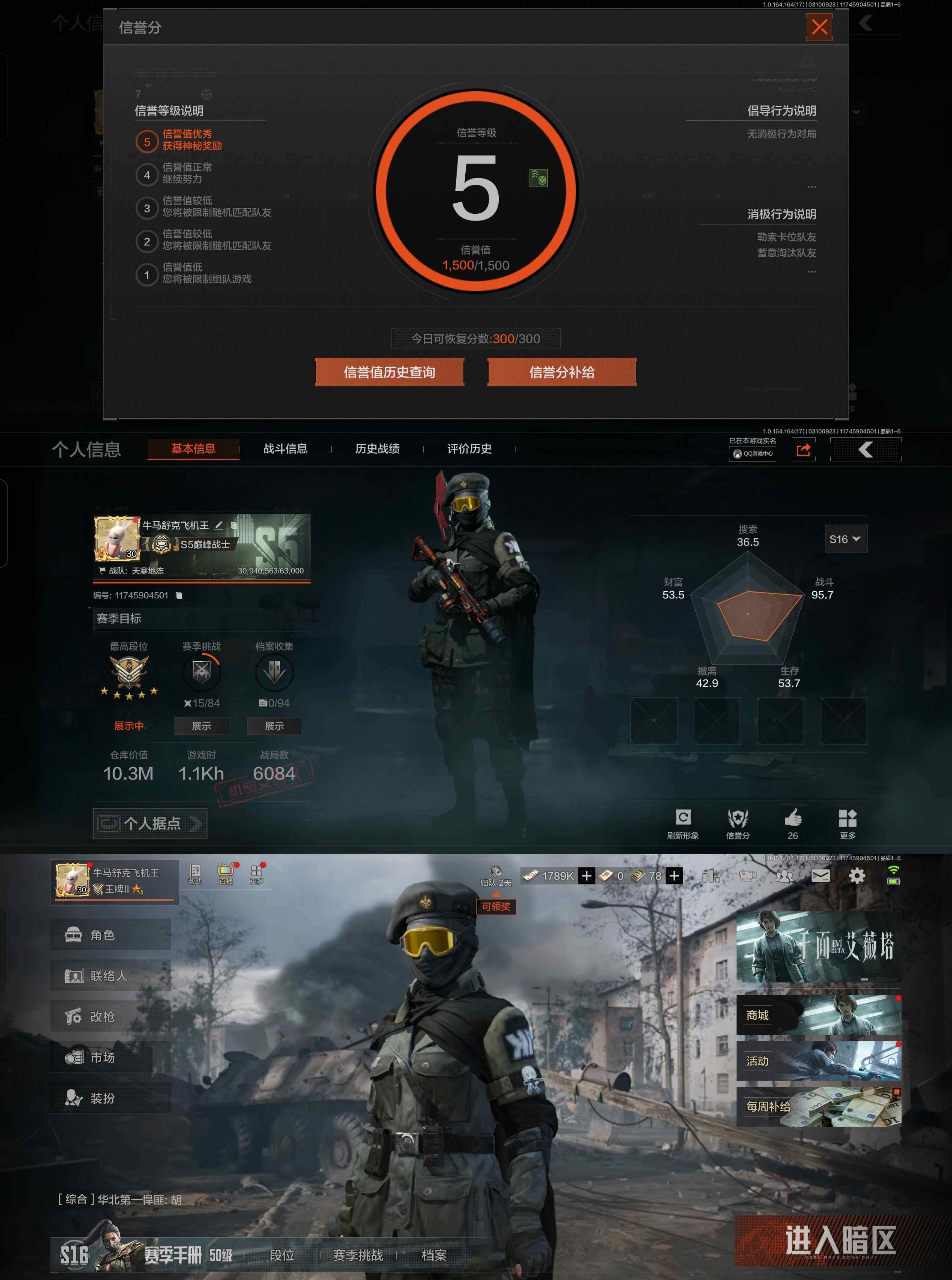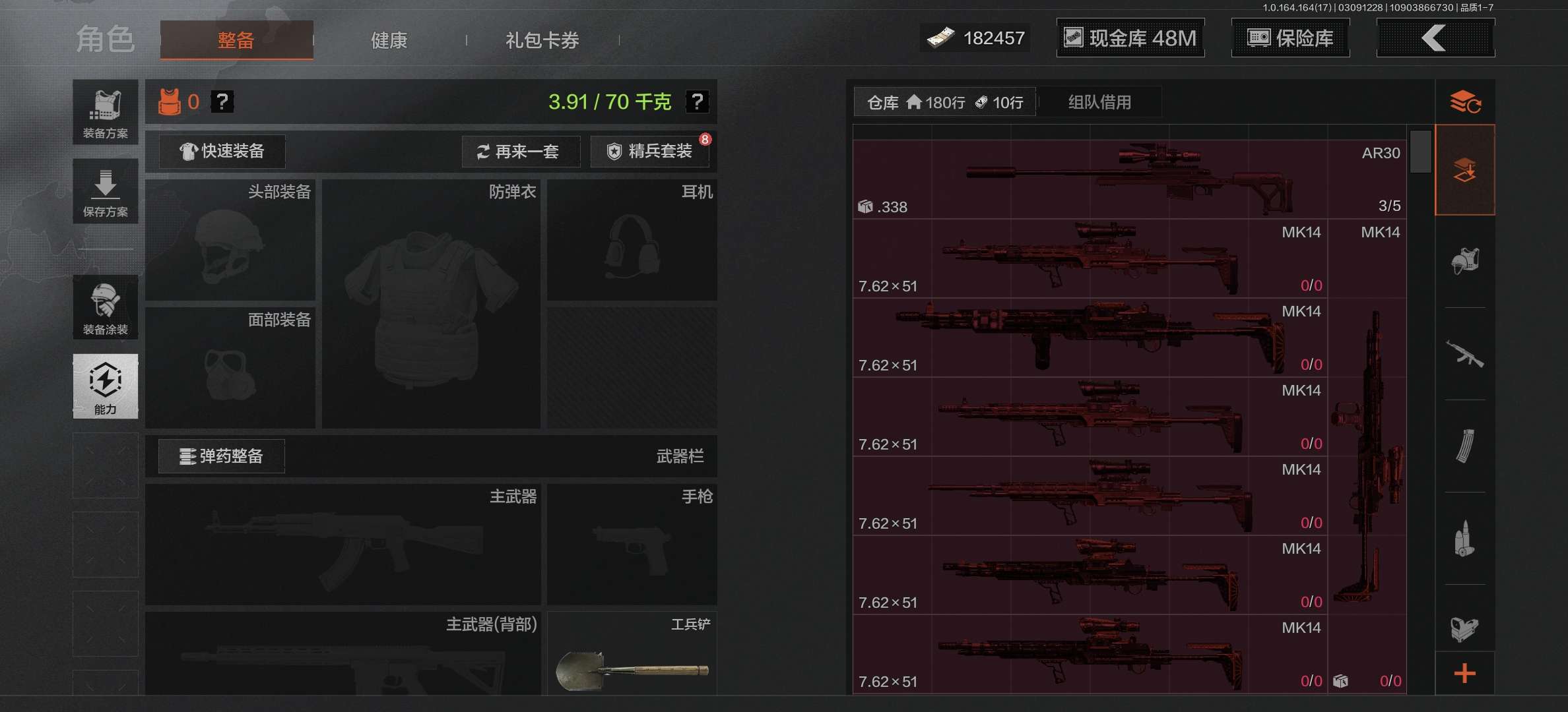x10,2把刀空腔战术,仓库34.4M,科恩币20107K,2黄枪战术大师骑士