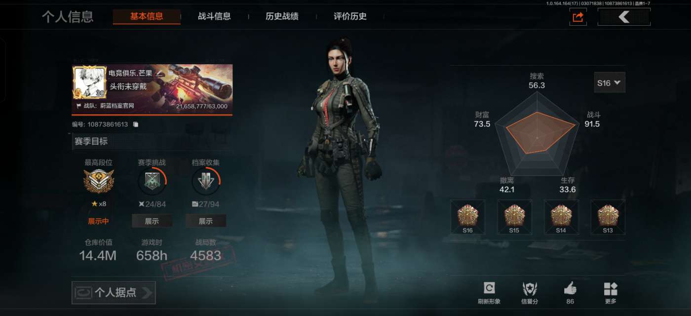 等级:30/段位:专家/仓库价值(百万):80.5/