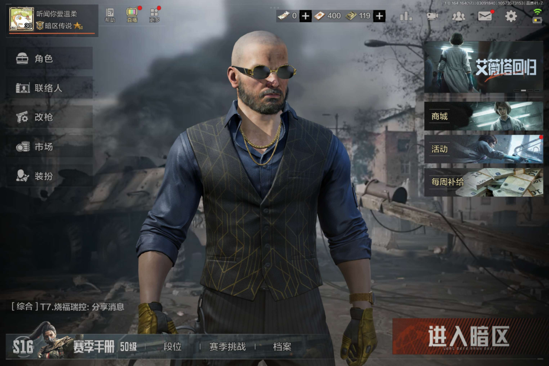 等级:30/段位:暗区传说/仓库价值(百万):7.5/柯恩币: