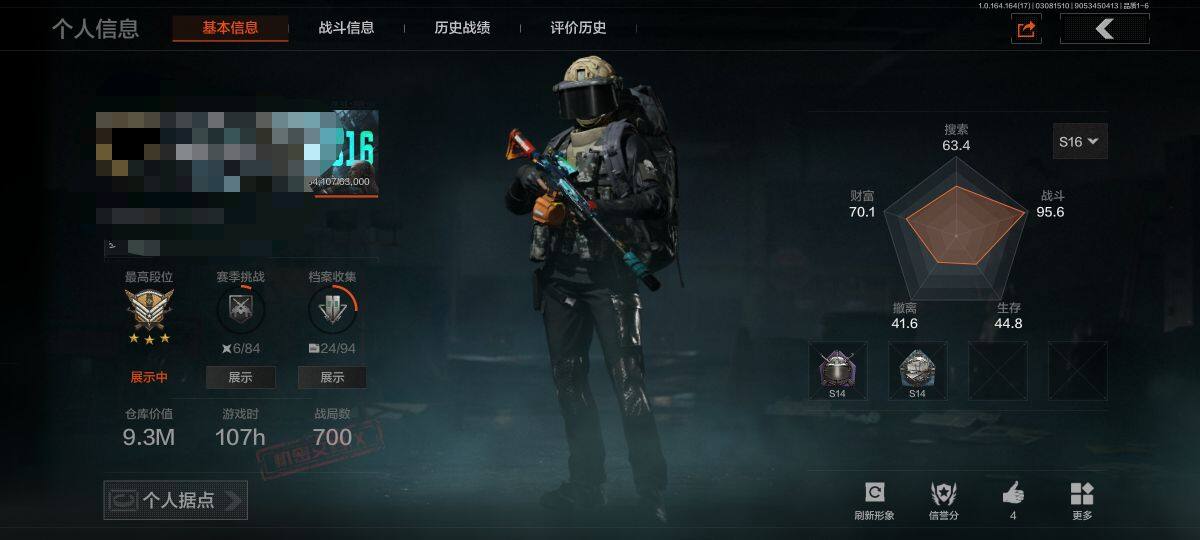 段位:王牌/仓库价值(百万):944/套金客莫雷尔
