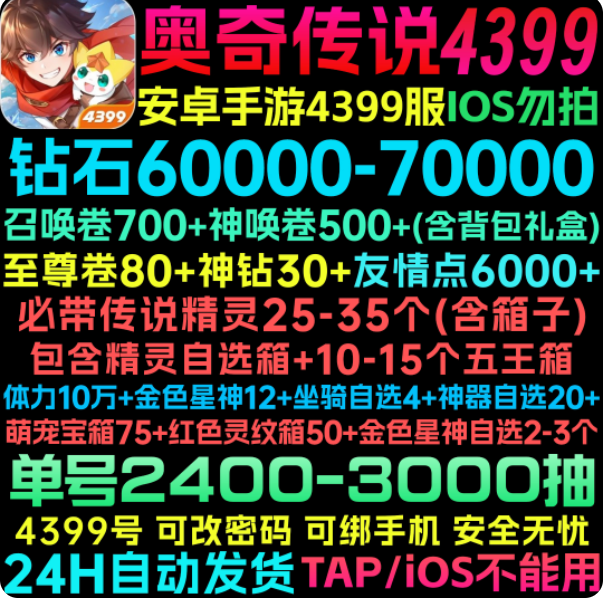 4399版本:共3200抽含80000钻石600神唤券800召唤券+20个传说英雄 (官服勿拍)