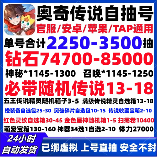 奥奇传说初始号手游自抽号安卓4399国服号自选组合60000钻石