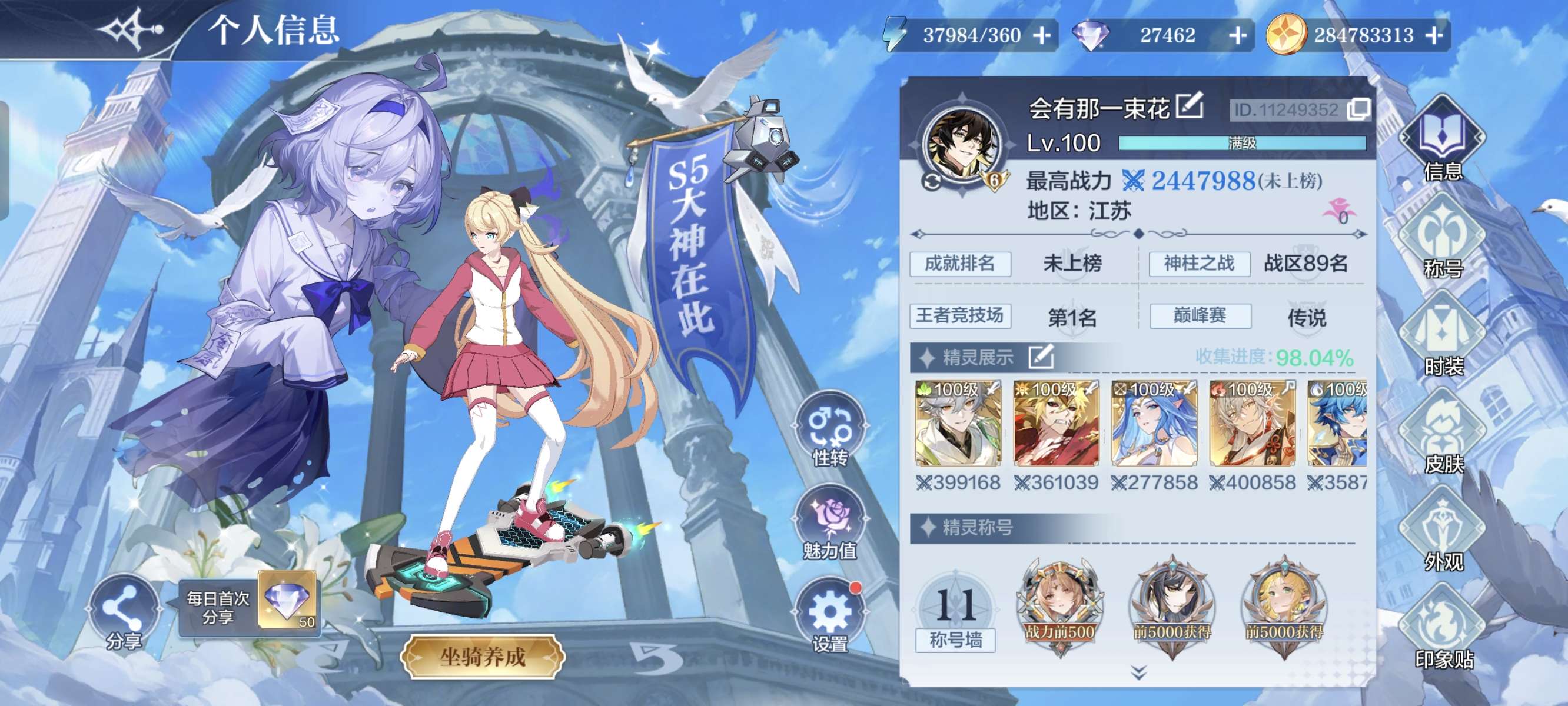 259w战力,15圣品27性转,资源巨多 ,都有皮肤