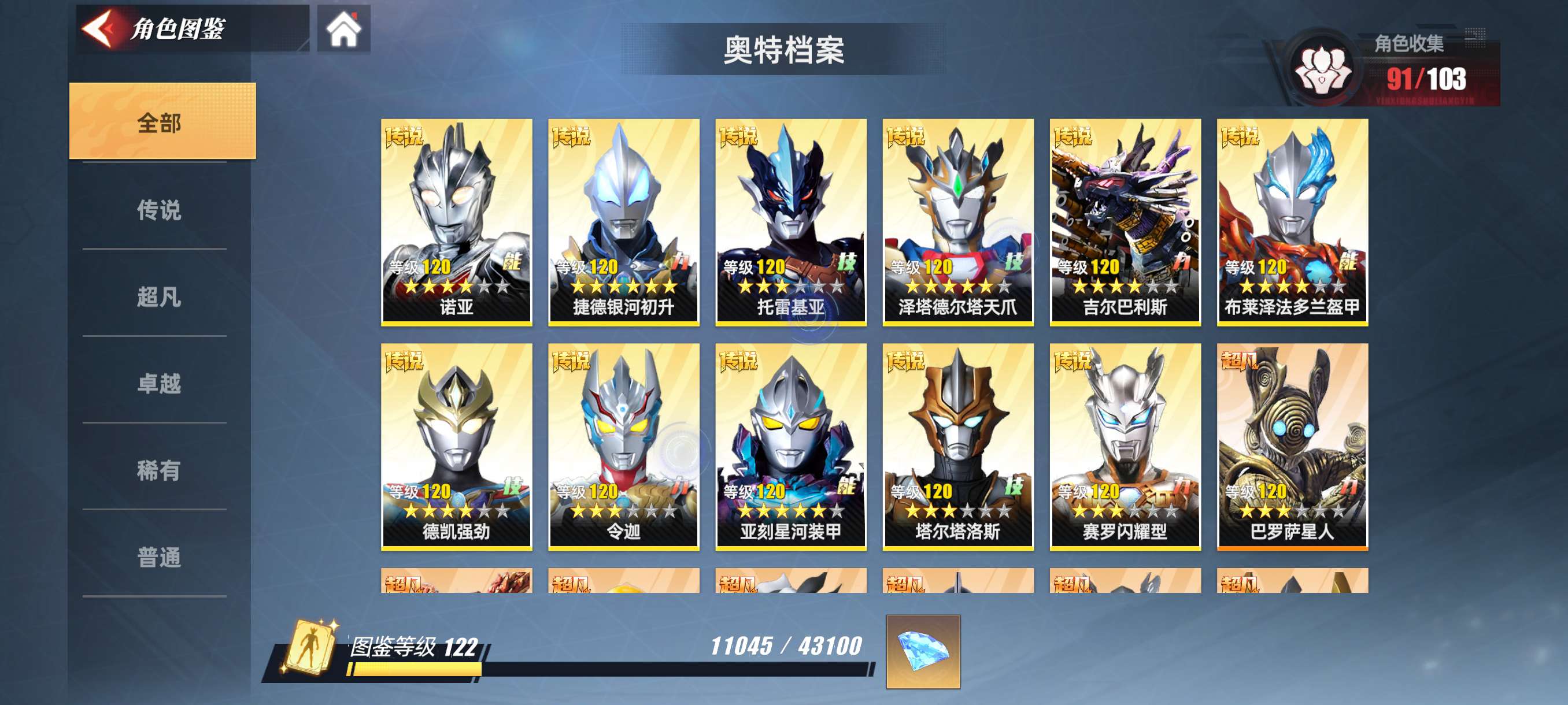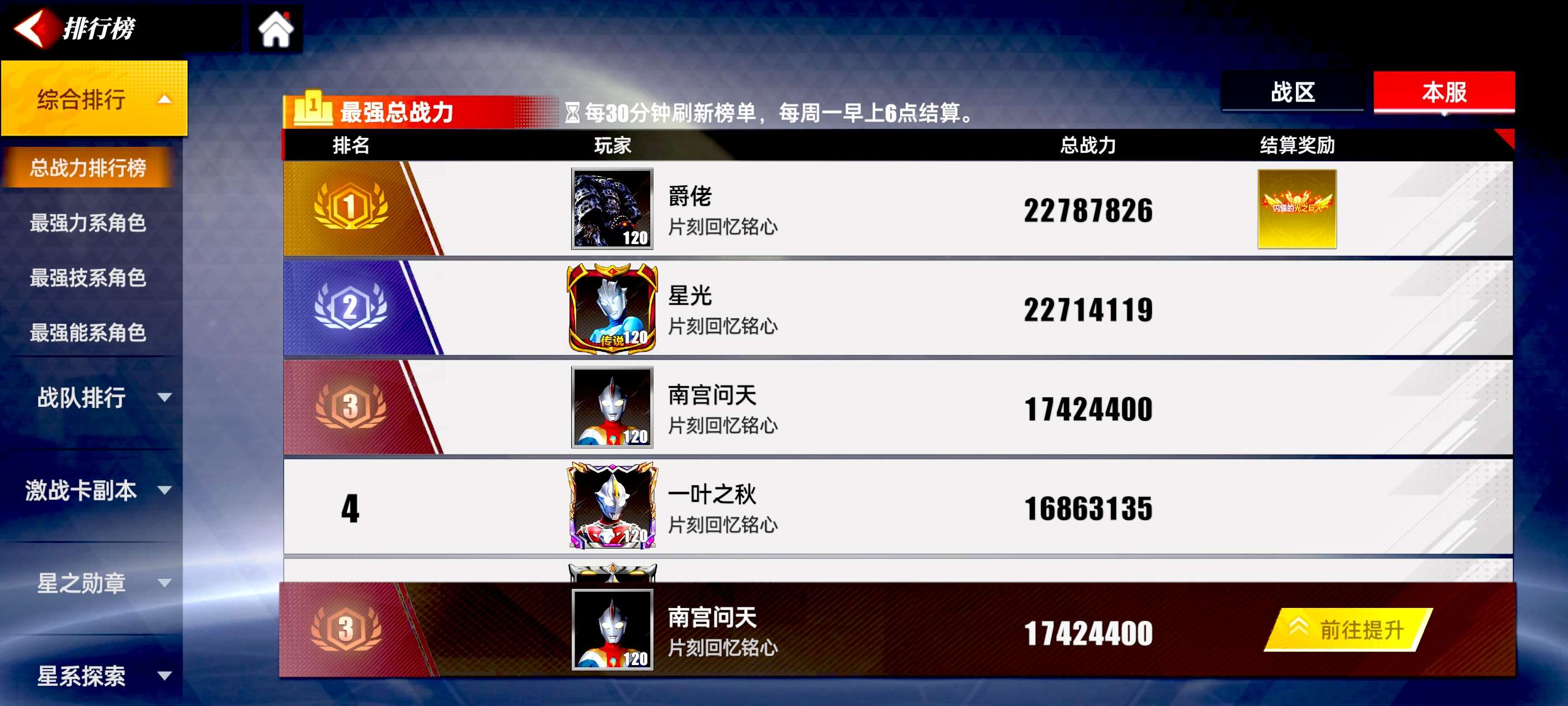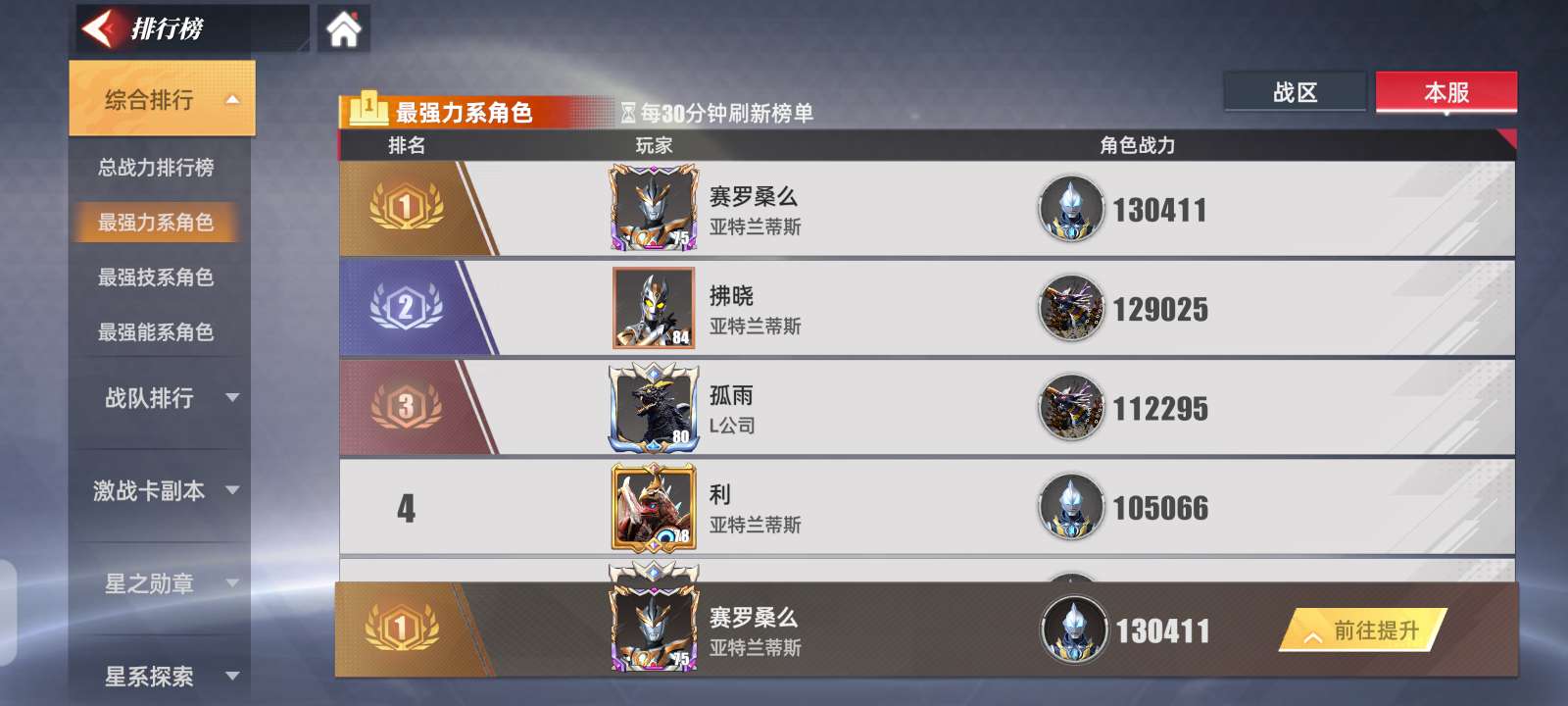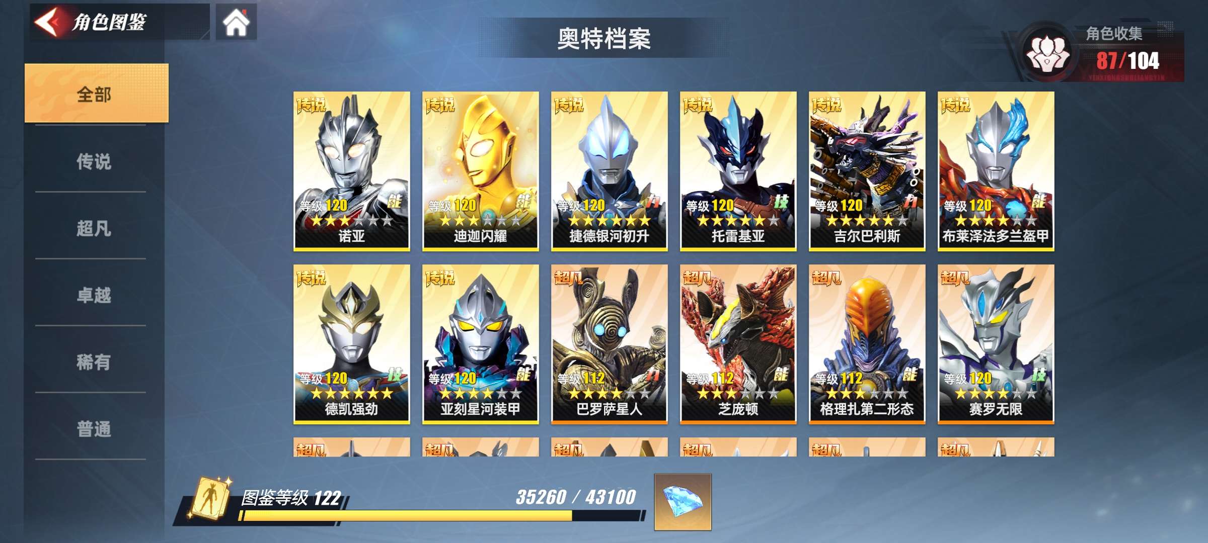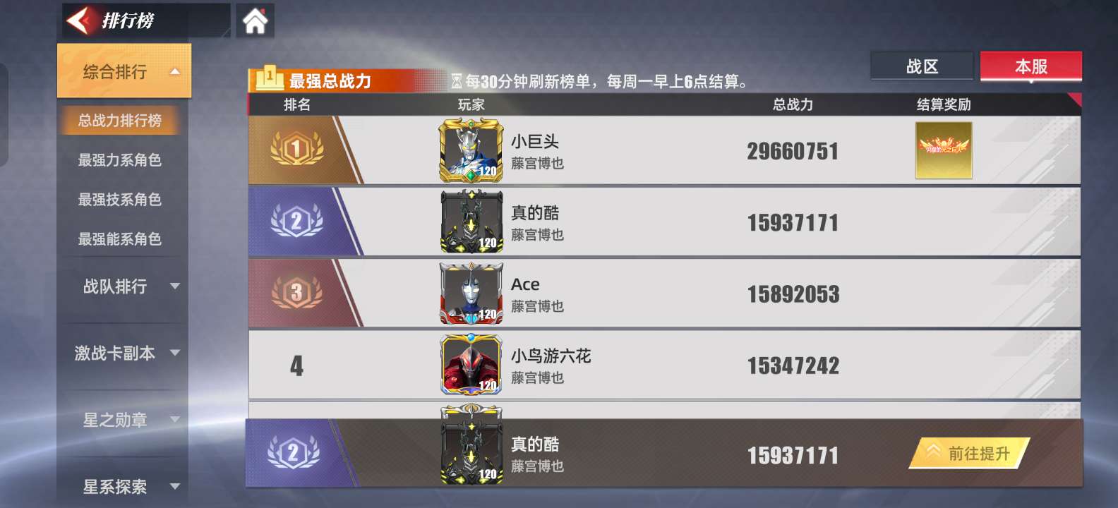 奥特曼传奇英雄2顶级角色战力号,详细看图