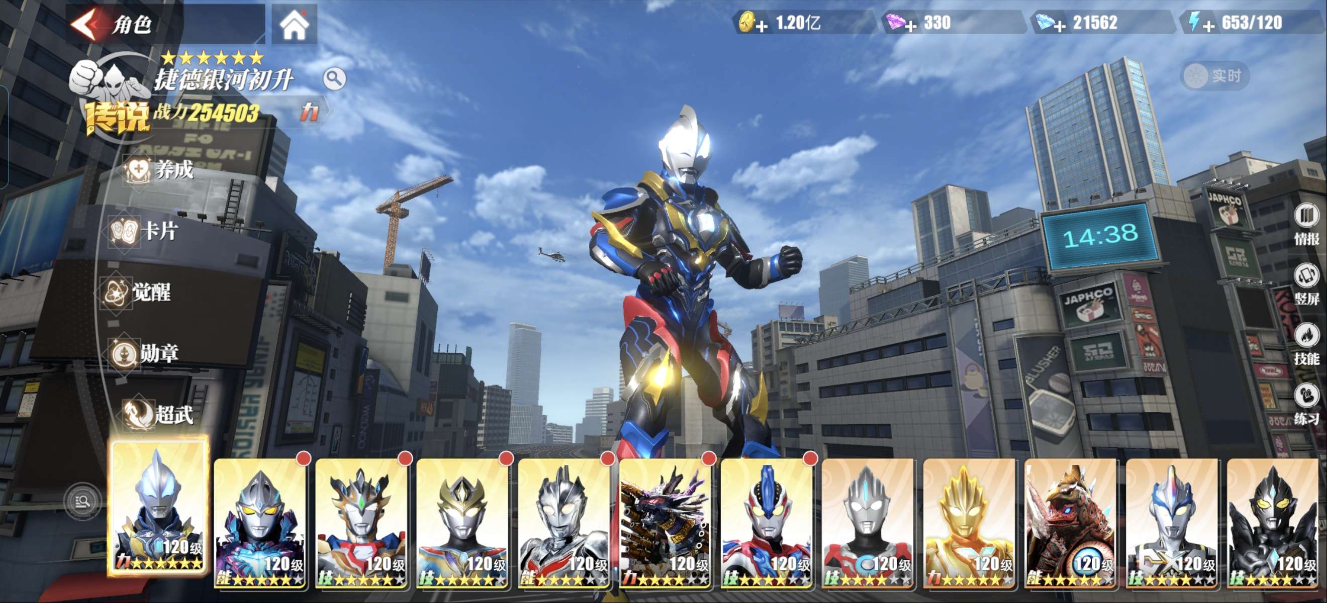 奥特曼传奇英雄2成品号,账号信息见图,战力114万+,角色多,传说、限定、稀有都有. 提醒是BT服