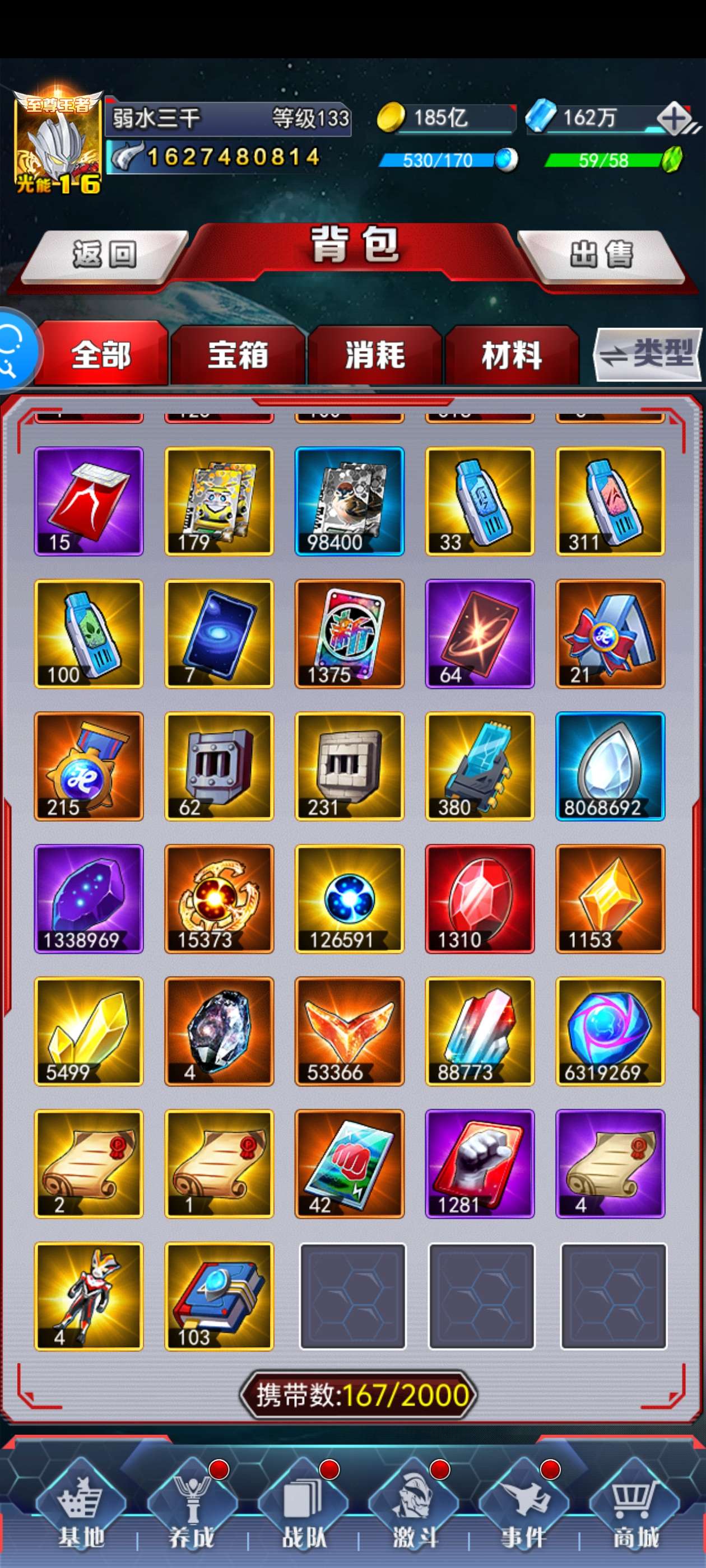 150亿邪阵,多红变,有大飞机,终身卡,背包有半个奥杀红变,一堆精华,资源多前途无量