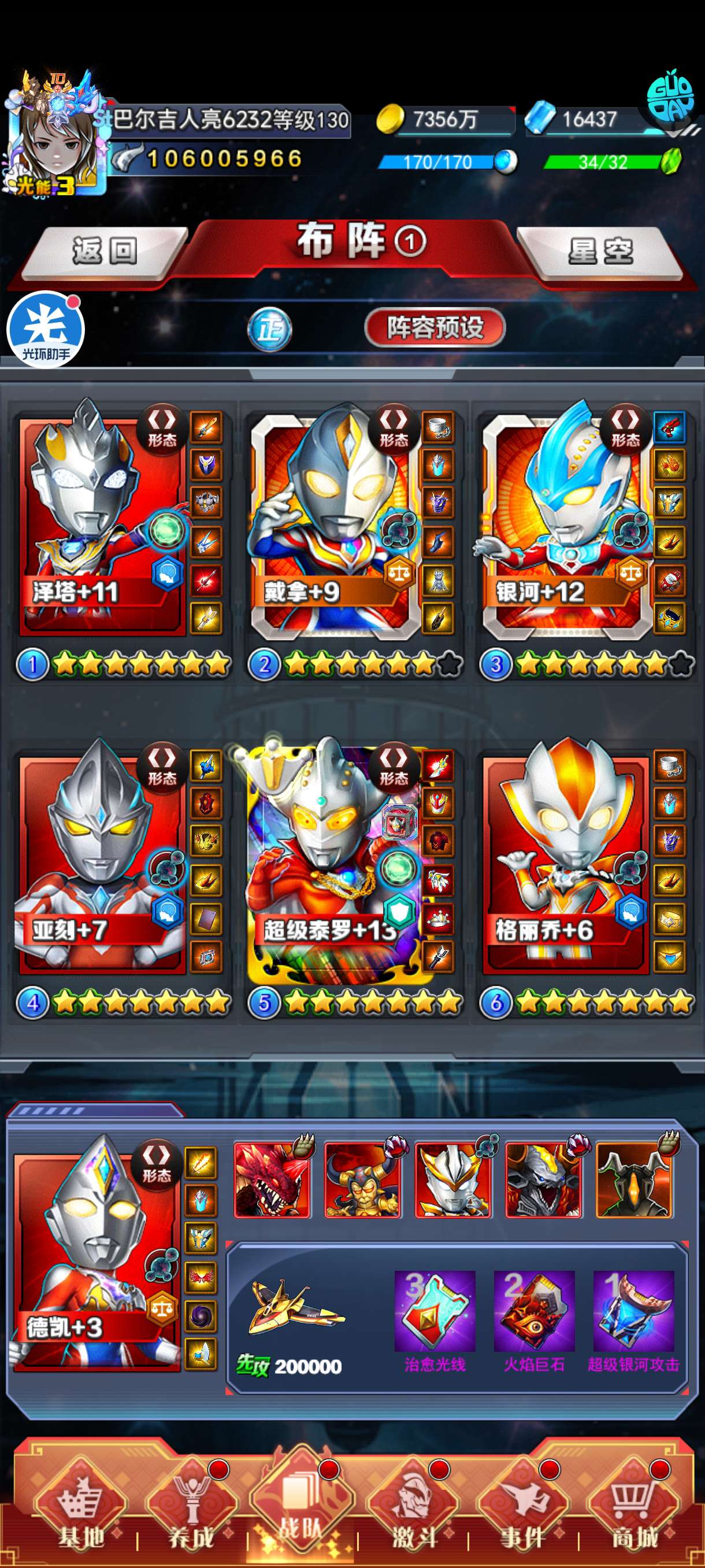 毕业超级泰罗还有一万多光源 成就和副本都没怎么做