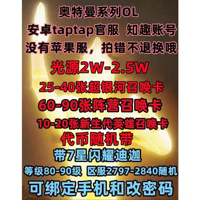 奥特曼系列OL自抽号初始号闪耀迪迦开局号tap官服号知趣账号光元