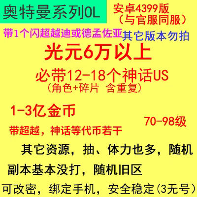 ❤️光元6万以上+碎片含重复)❤️必带12-18个神话US(角色❤️1-3亿金币❤️70-98级