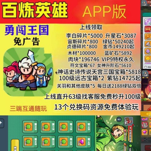 百炼英雄【全服通用】无限充值无限道具,无限资源自己后台随便刷,安卓苹果都可以,自己注册,无二次消费