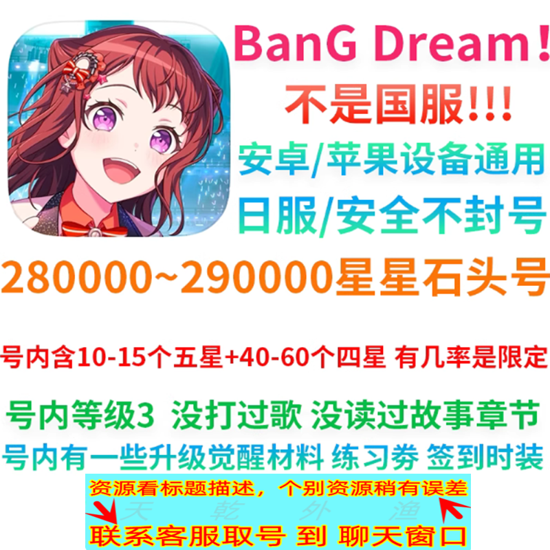 BanG Dream!邦邦初始日服10-15五星40-60四星+260000星石头自抽号