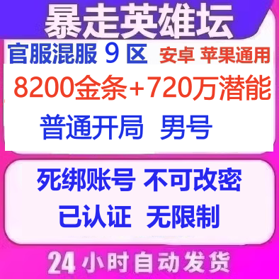 自动发货暴走英雄坛金条混服9区账号角色金条官服自抽初始号