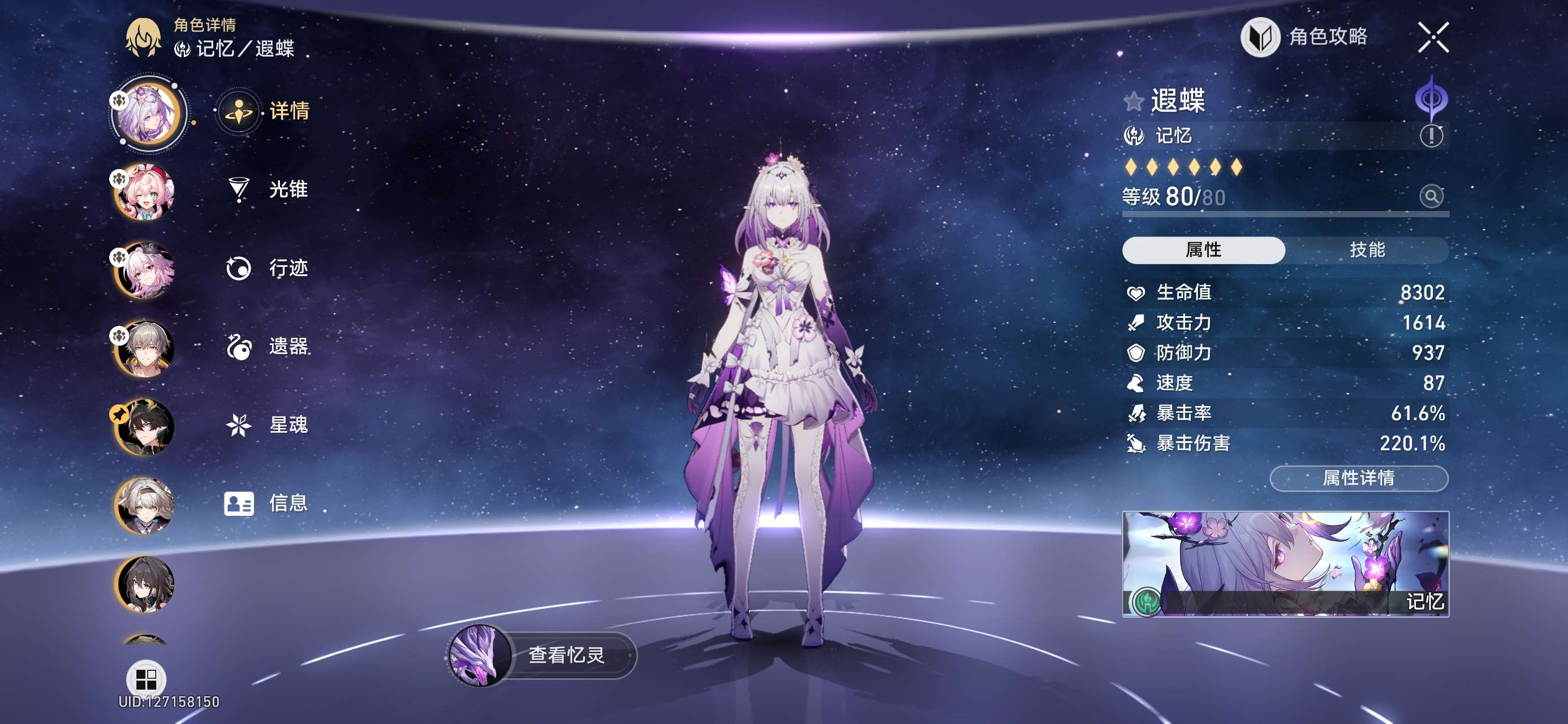 88黄 55角色黄 33光锥黄 32五星角色 26五星光锥 70级 女主