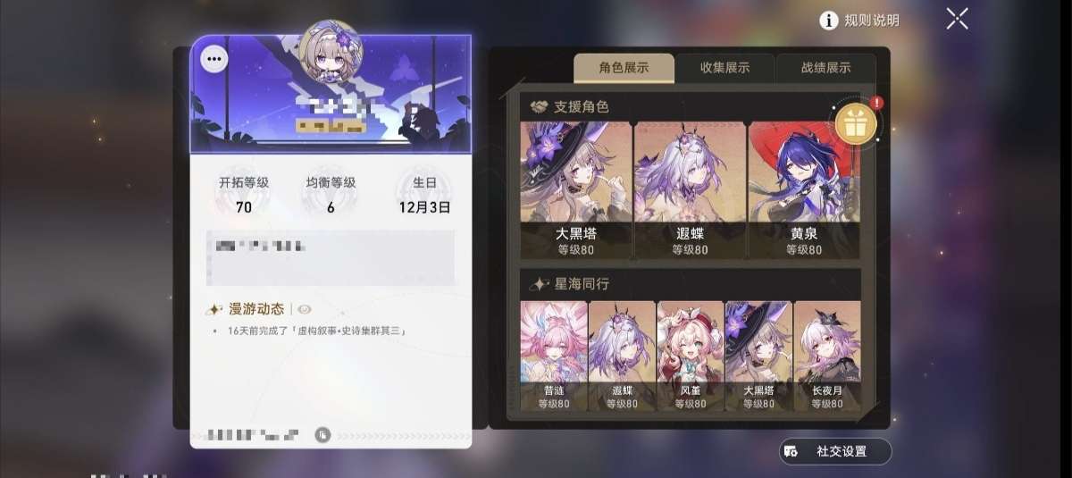 动态名片,2+1遐蝶,2+1流萤,2+1黄泉,1+1长夜月,00风堇00昔涟
