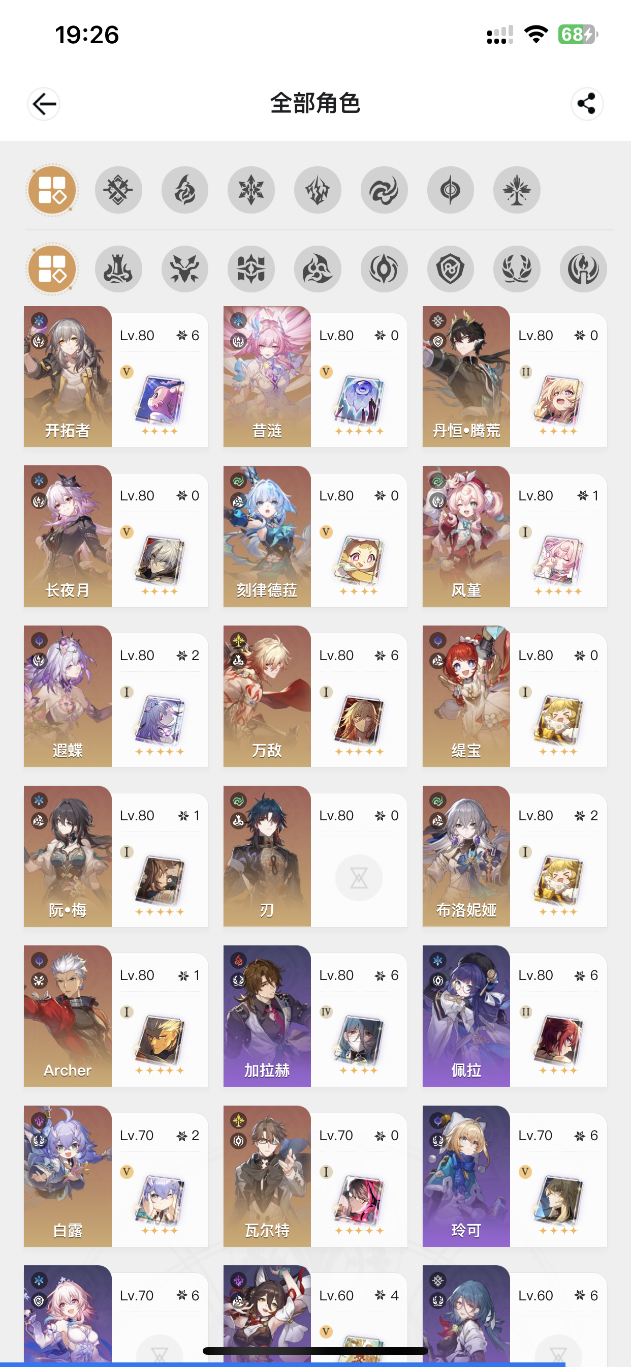 21遐蝶,20昔涟,10风堇,多角色