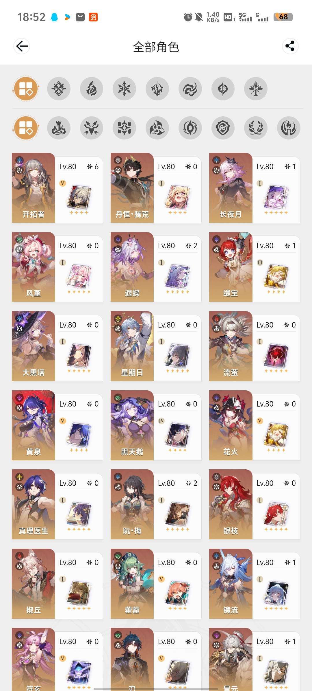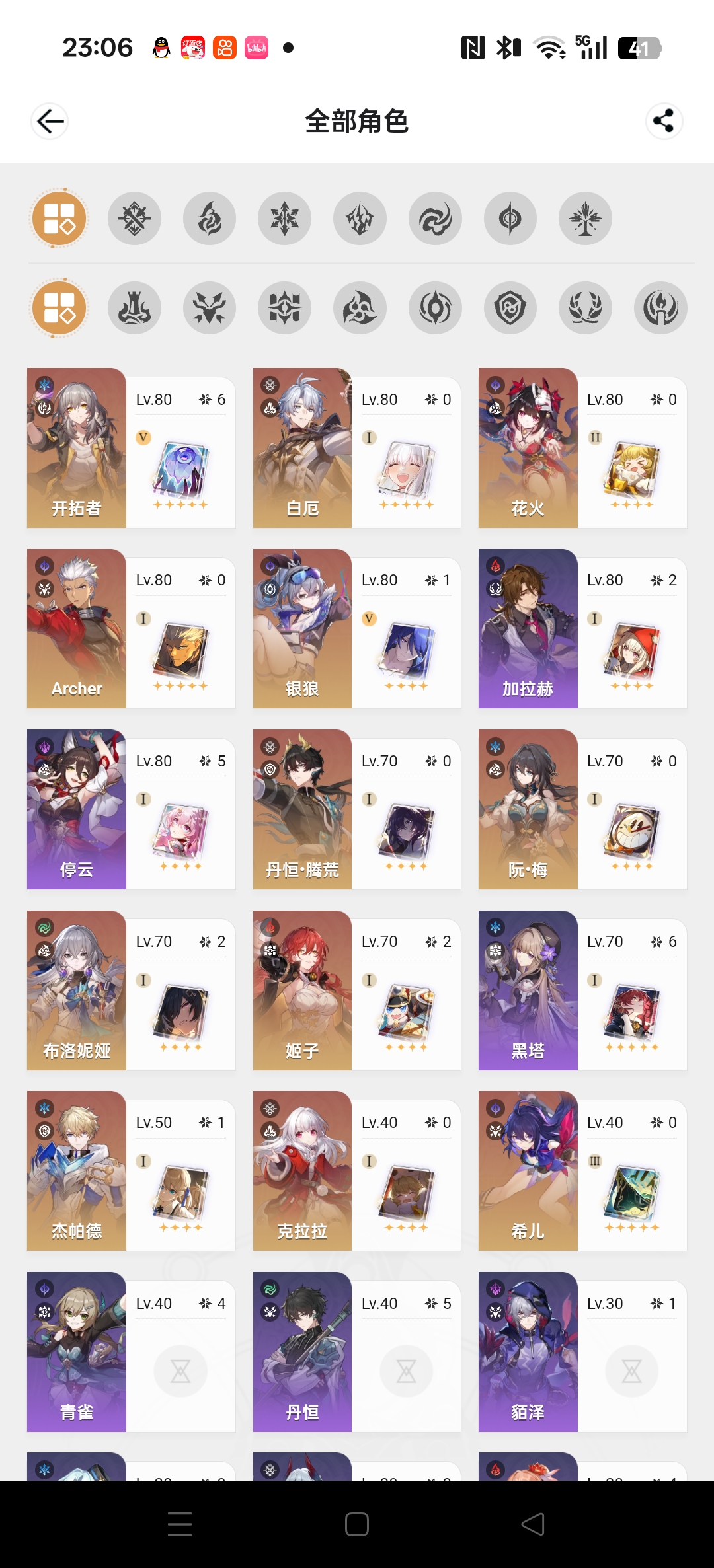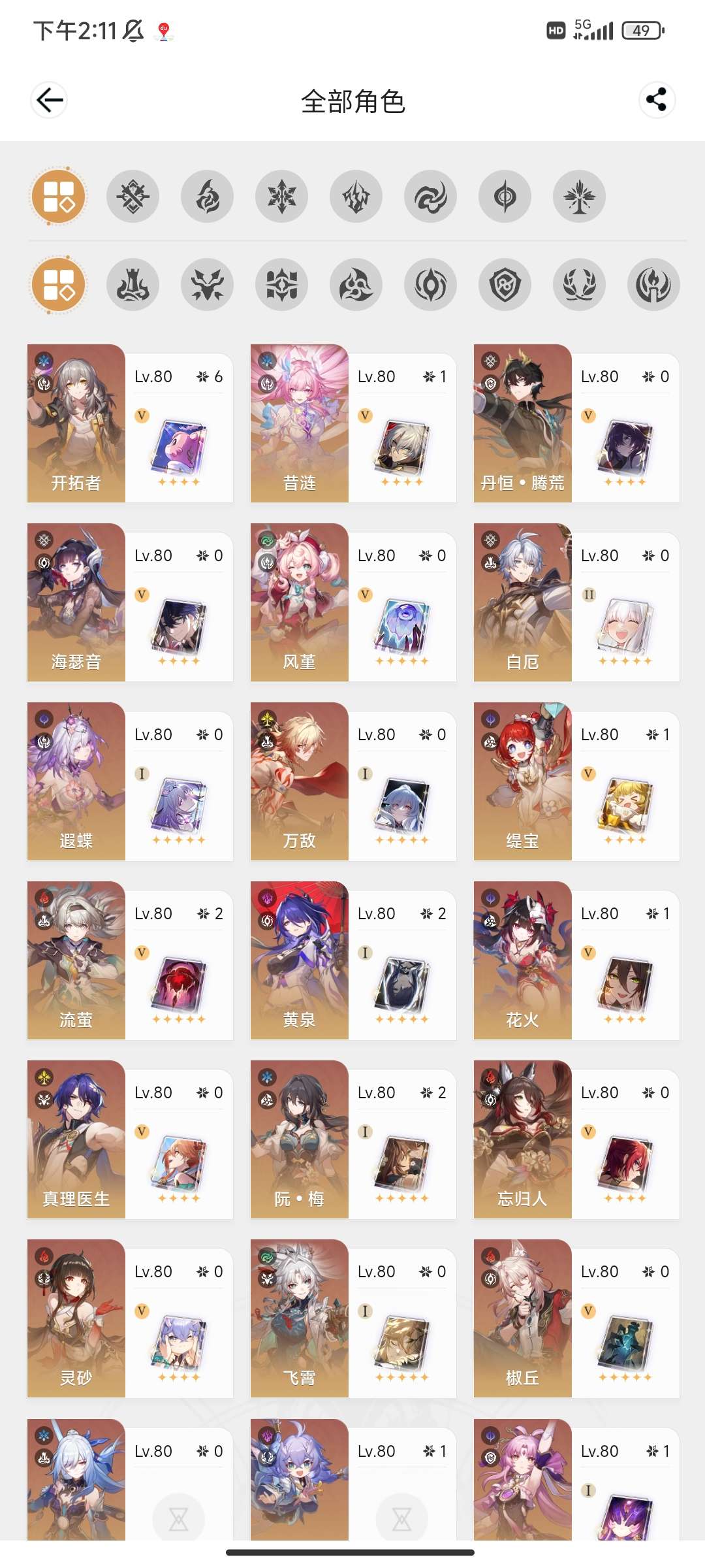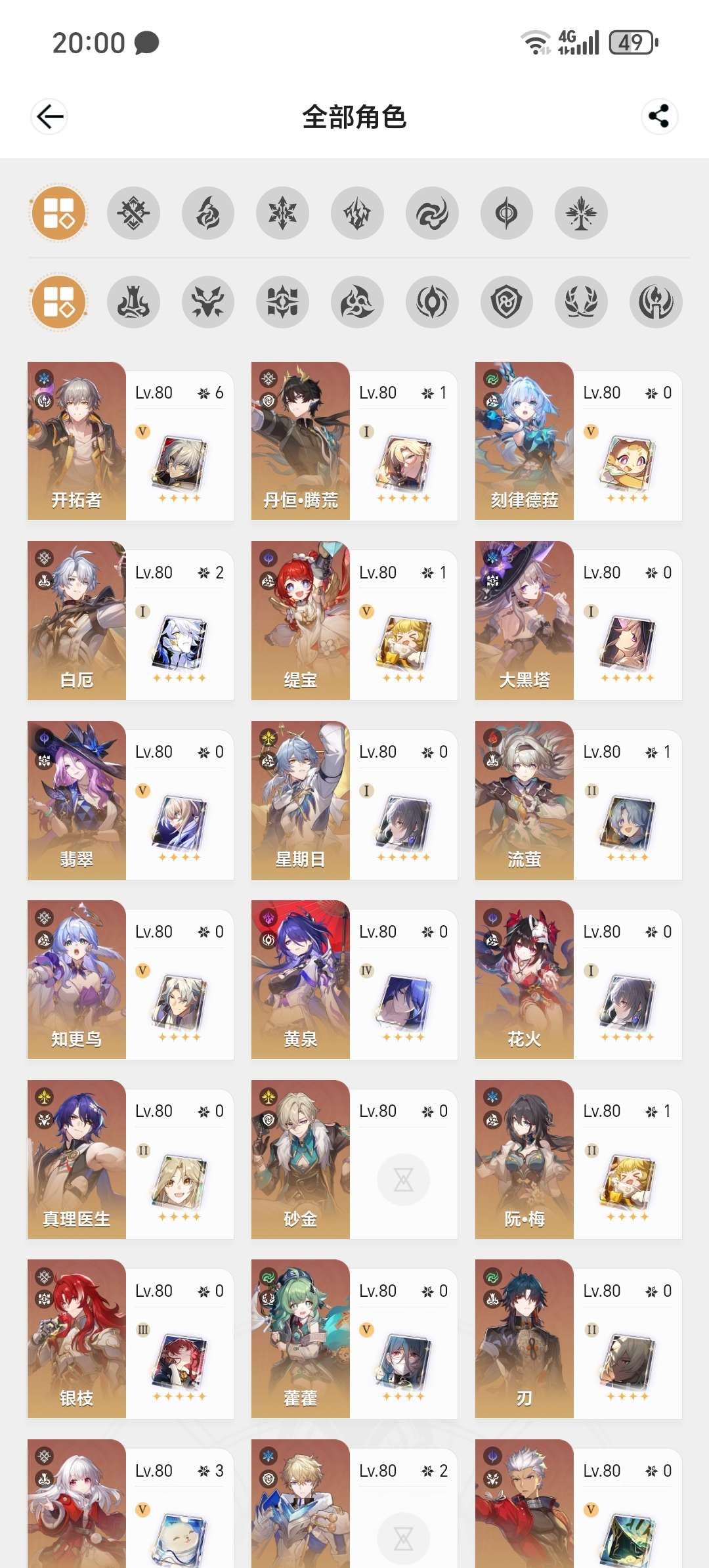 崩坏:星穹铁道【安卓官方】1命银狼0命花火01红A00白厄00盾丹00阮梅2命姬子2命鸭鸭0命希儿