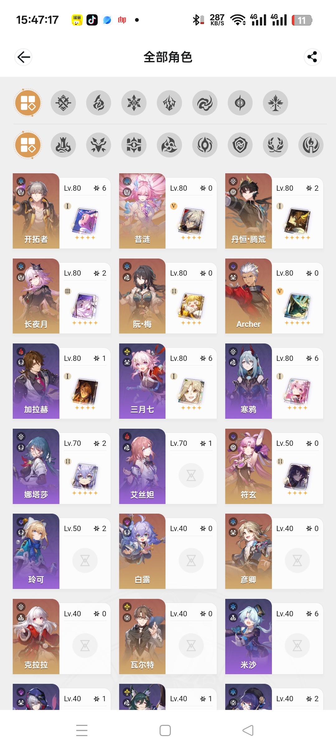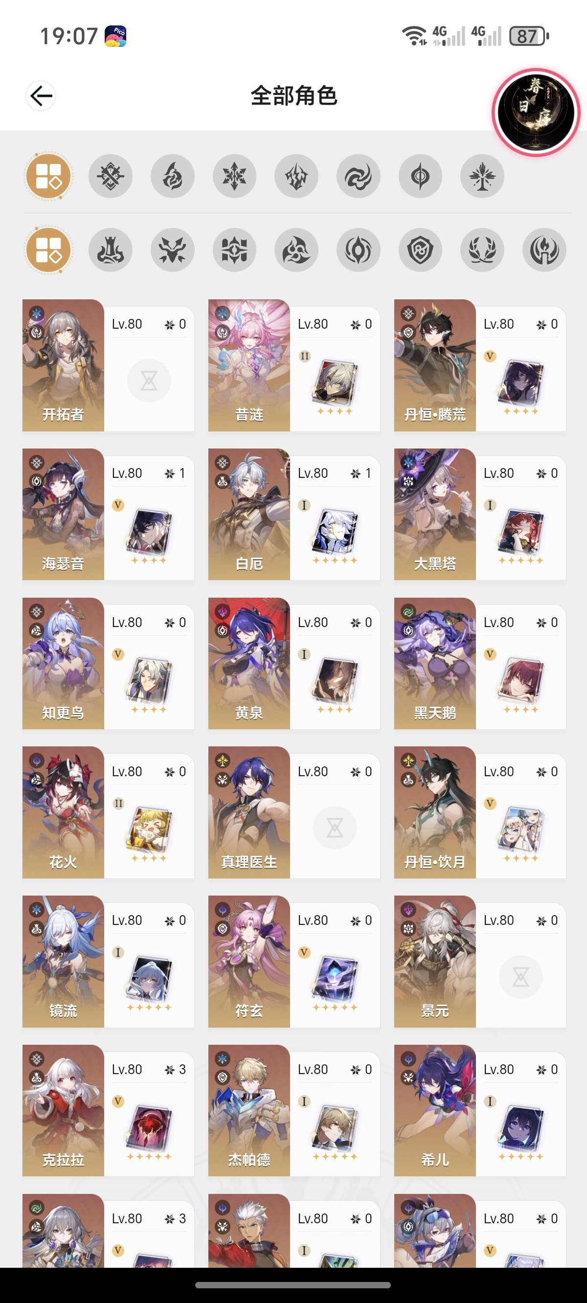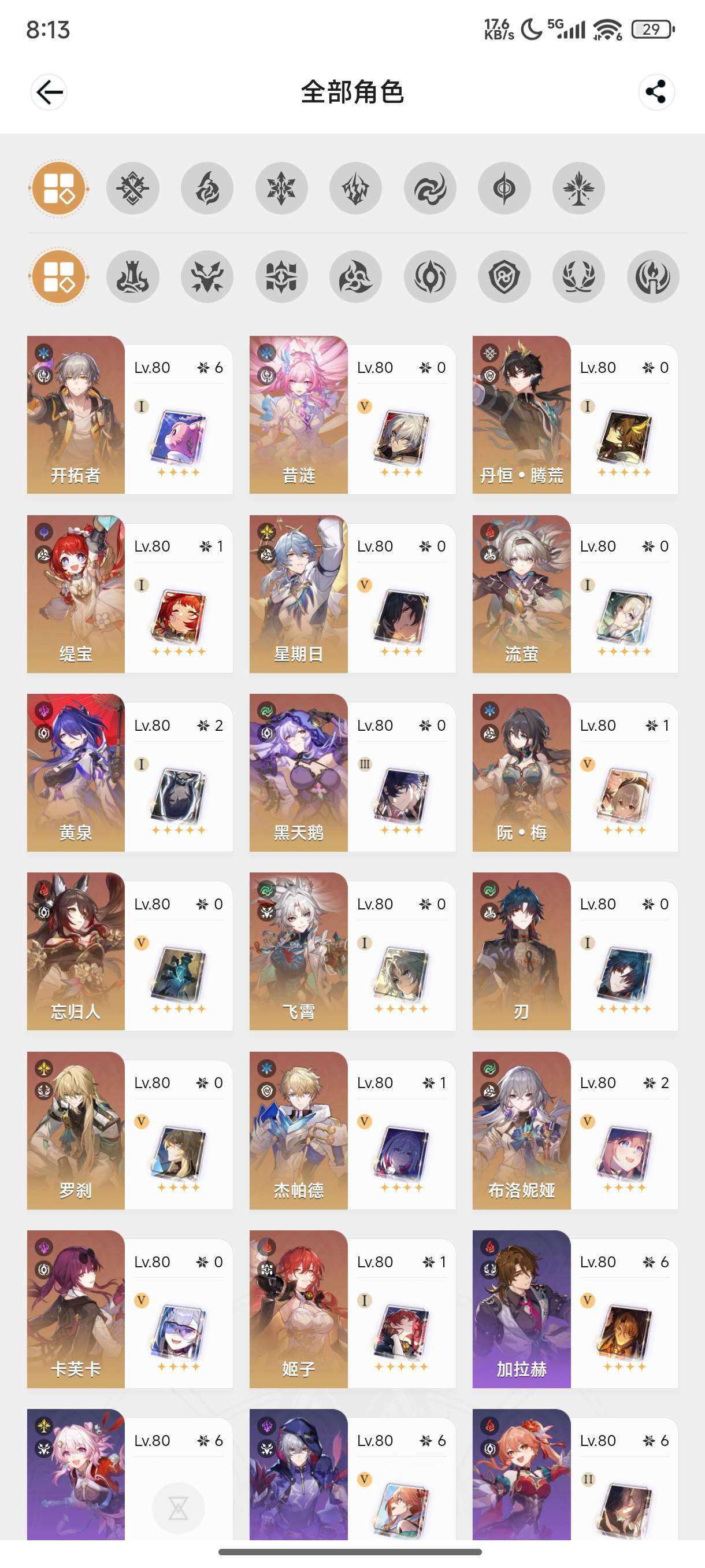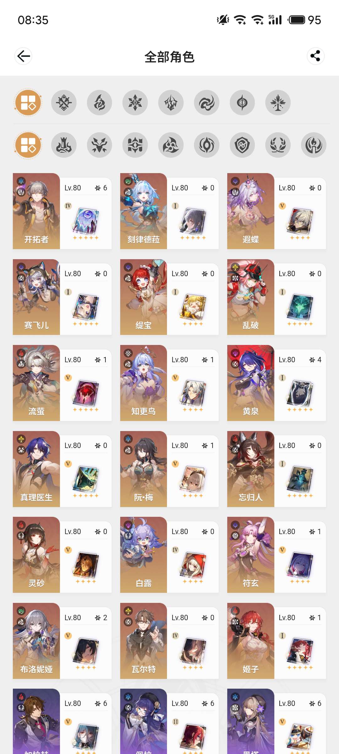 崩坏:星穹铁道【安卓官方】1命银狼0命花火01红A00白厄00盾丹00阮梅2命姬子2命鸭鸭0命希儿