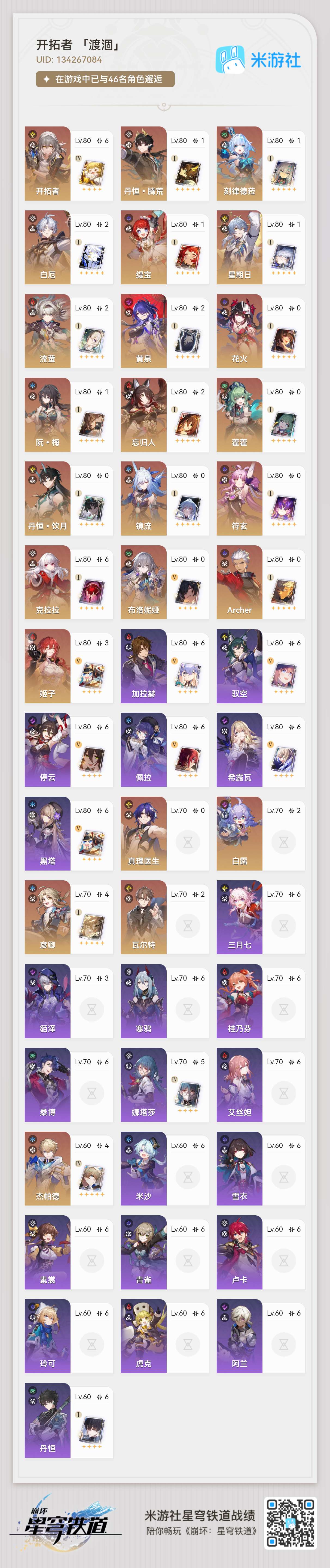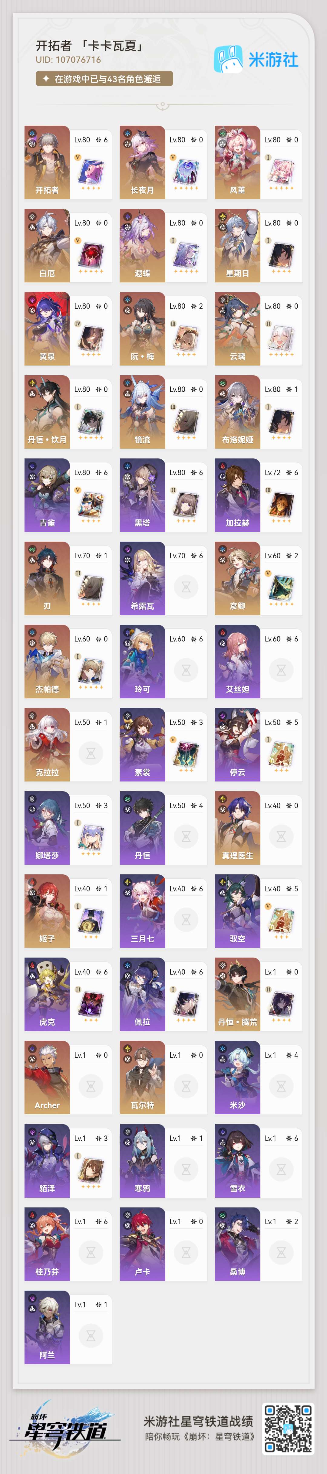 崩铁开服号记忆战舰除了昔涟都是中上练度