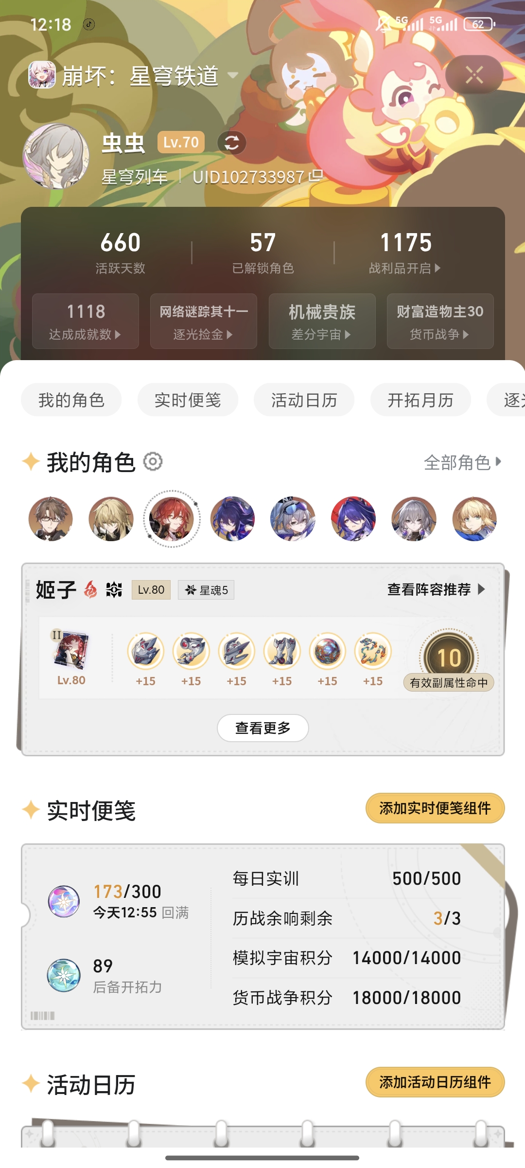 超欧号,欢愉战舰,6+1爻光,六千多星穹,活动没咋动,可抽花火,单绑手机