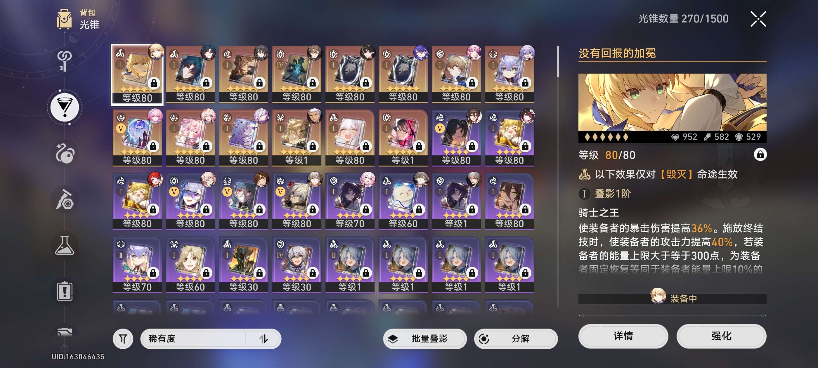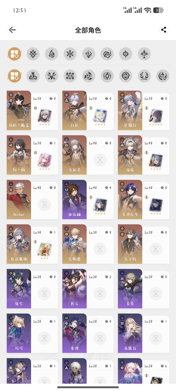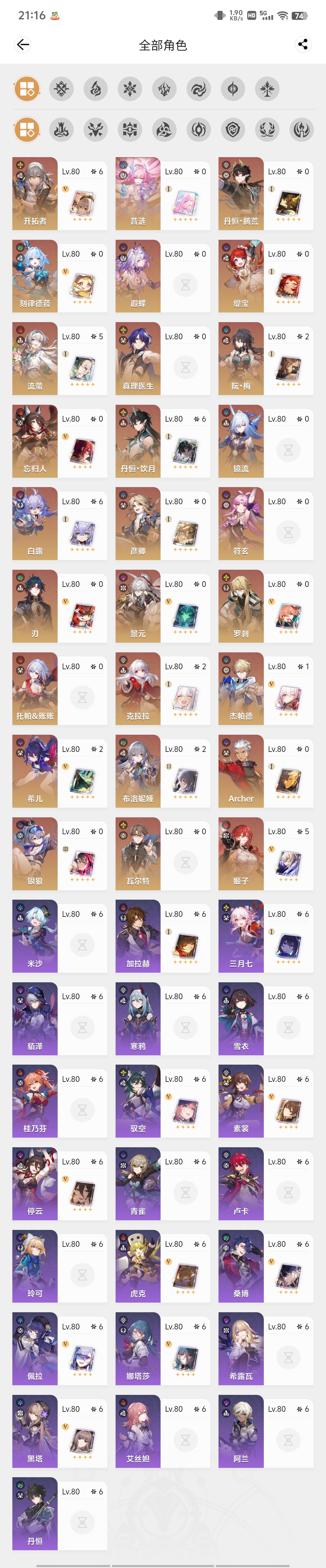 遐蝶2命带专武,知更鸟希儿1命带专武,白厄大黑塔黄泉镜流花火红A刃都带有专武,星期日1命,邮箱未绑定