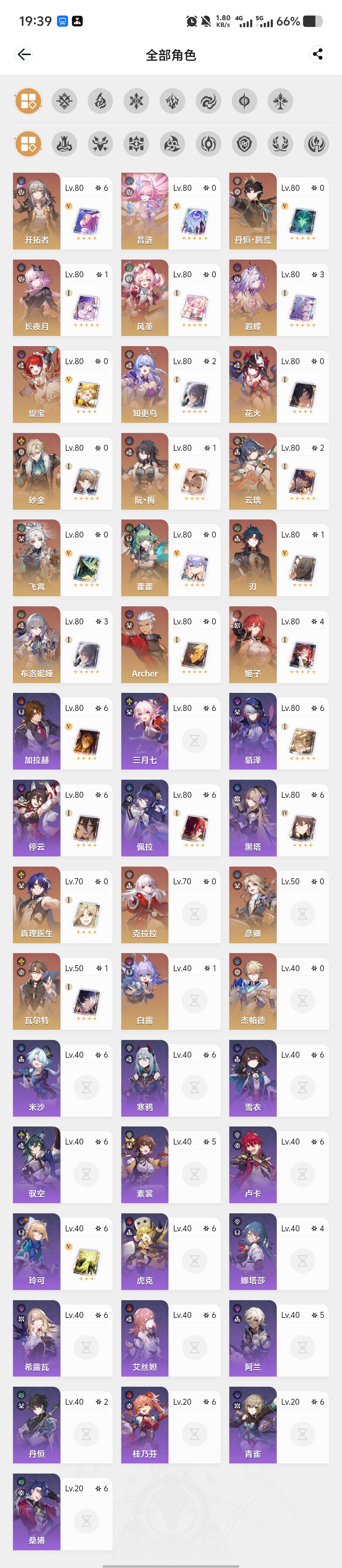 64黄 4命遐蝶带专 2命白厄 2命流萤 1命风瑾 1命缇宝xt1734