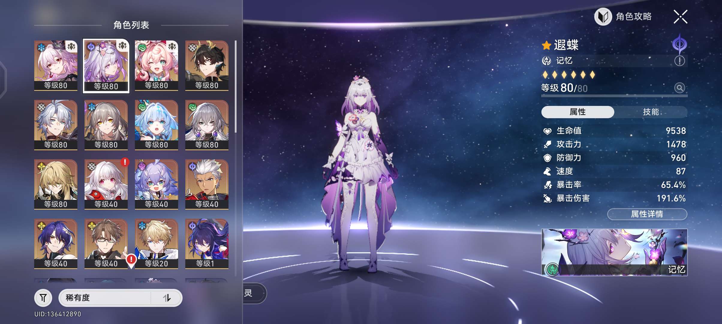 崩铁成品号 01遐蝶毕业 01腾荒毕业 00白厄毕业 00昔涟 14限定金 70级满级 可议价